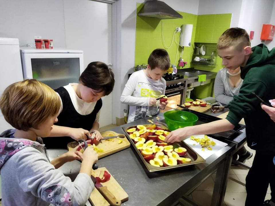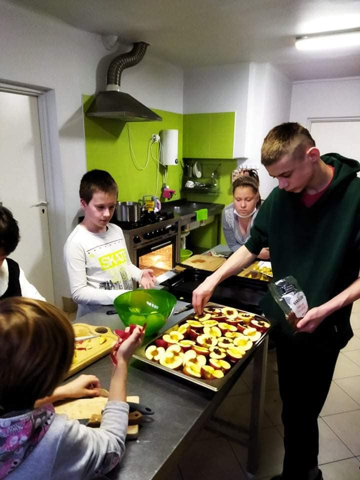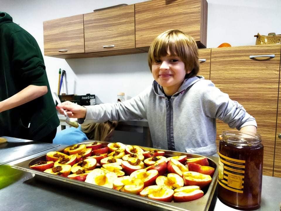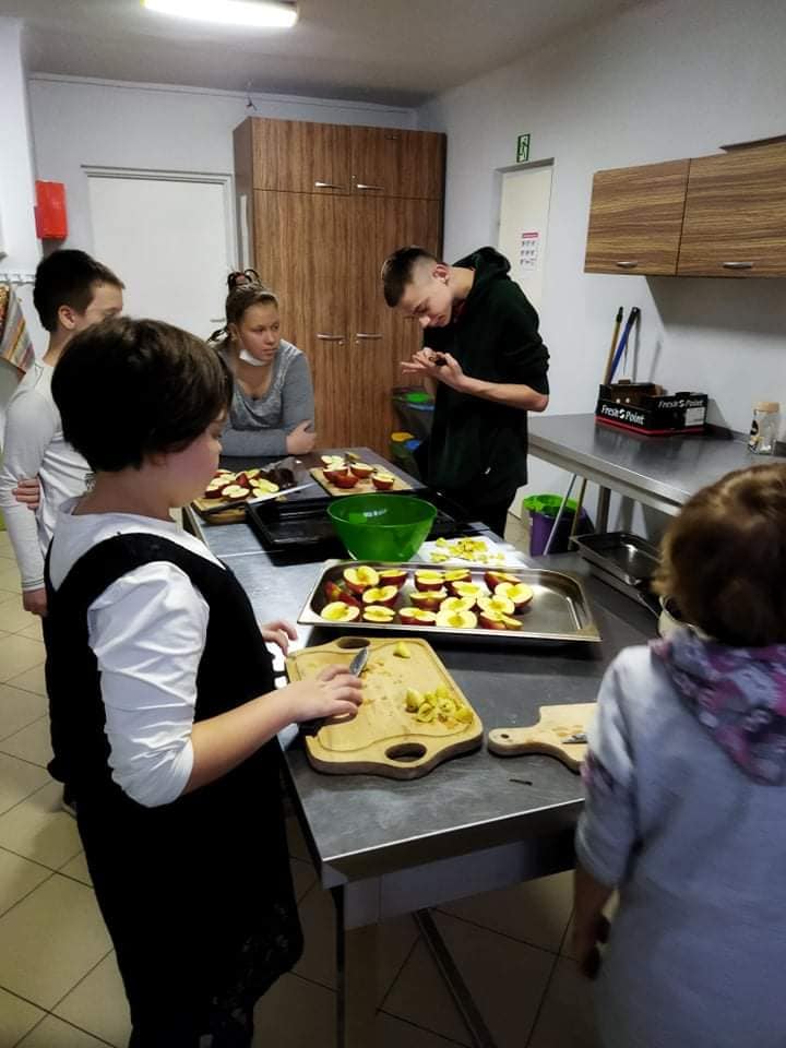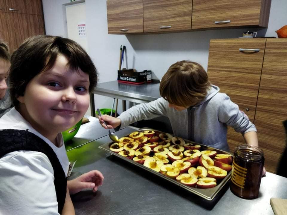. Wychowankowie grupy III i IV samodzielnie przygotowali pyszny i zdrowy podwieczorek dla wszystkich naszych grup wychowawczych. Starannie umyli i wydrążyli owoce, które później faszerowali rodzynkami oraz doprawili miodem... Ależ było pysznie ....