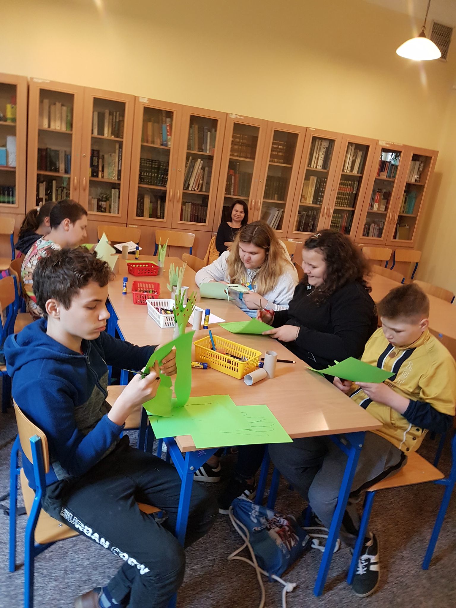 30.05.22 odbyła się wycieczka klas 4-5 r i 4-5 x do Biblioteki Pedagogicznej na warsztaty w ramach XXI Ogólnopolskiego Tygodnia Czytania Dzieciom "Polacy autorzy dla klimatu". Podczas spotkania uczniowie mieli możliwość pogłębienia wiedzy na temat zachowań proekologicznych oraz stworzyli swój własny ekologiczny "mini las".