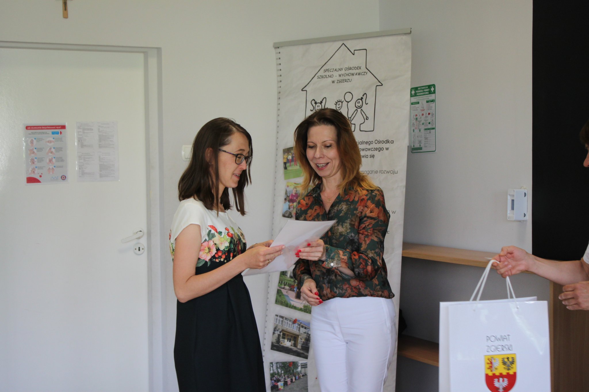 14 czerwca w naszym Ośrodku odbyło się uroczyste wręczenie nagród za udział w konkursie "Sprawne ręce - "eko" pomoc dydaktyczna dla dzieci w wieku przedszkolnym". Laureaci odebrali nagrody i dyplomy z rąk pani Klaudii Szembek - dyrektor Specjalnego Ośrodka Szkolno - Wychowawczego im. Kornela Makuszyńskiego w Zgierzu oraz pomysłodawczyń konkursu Upominki ufundowali patroni wydarzenia - Starosta Zgierski oraz miesięcznik Bliżej Przedszkola.