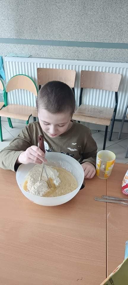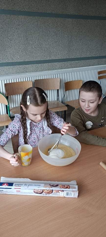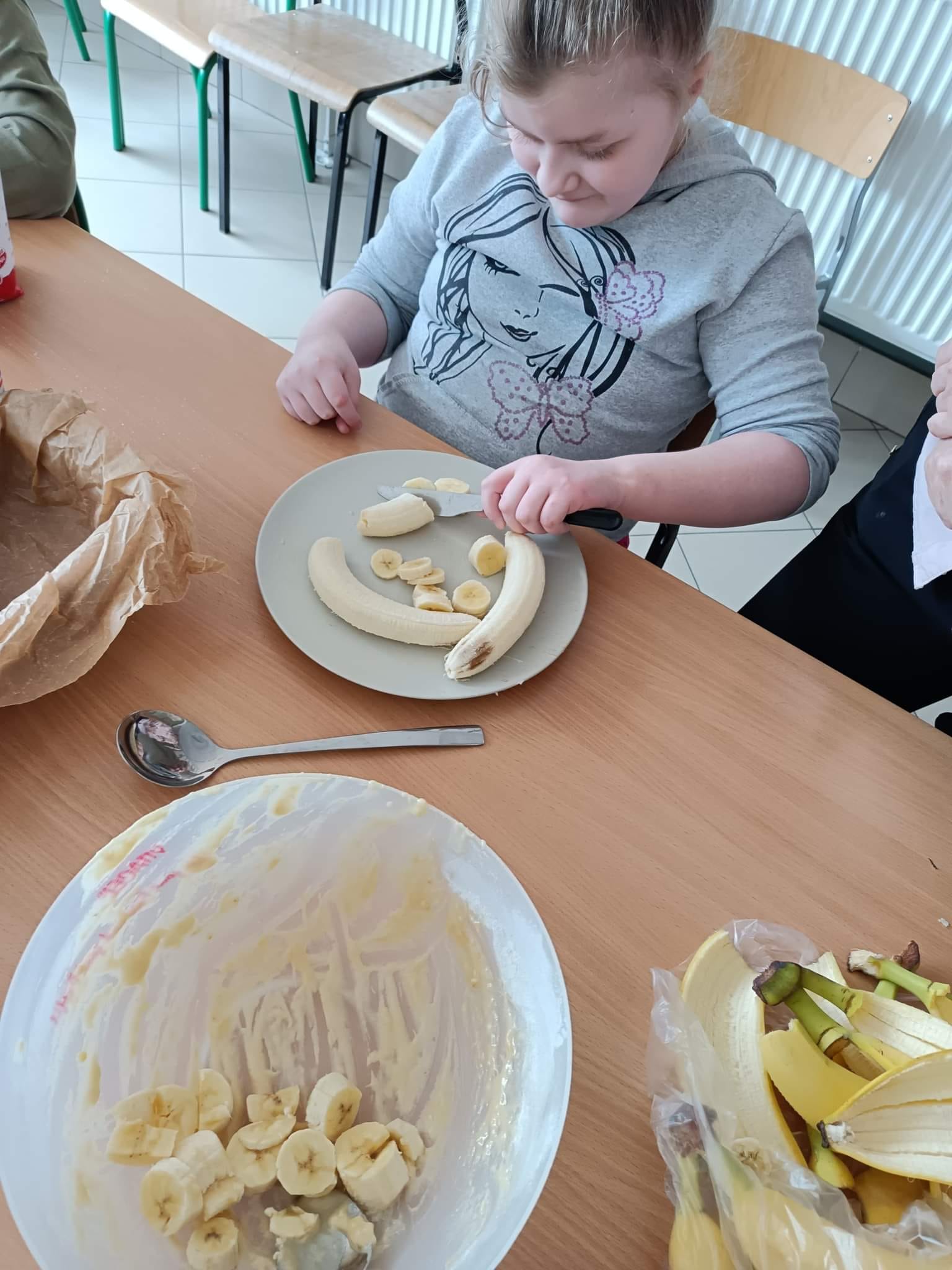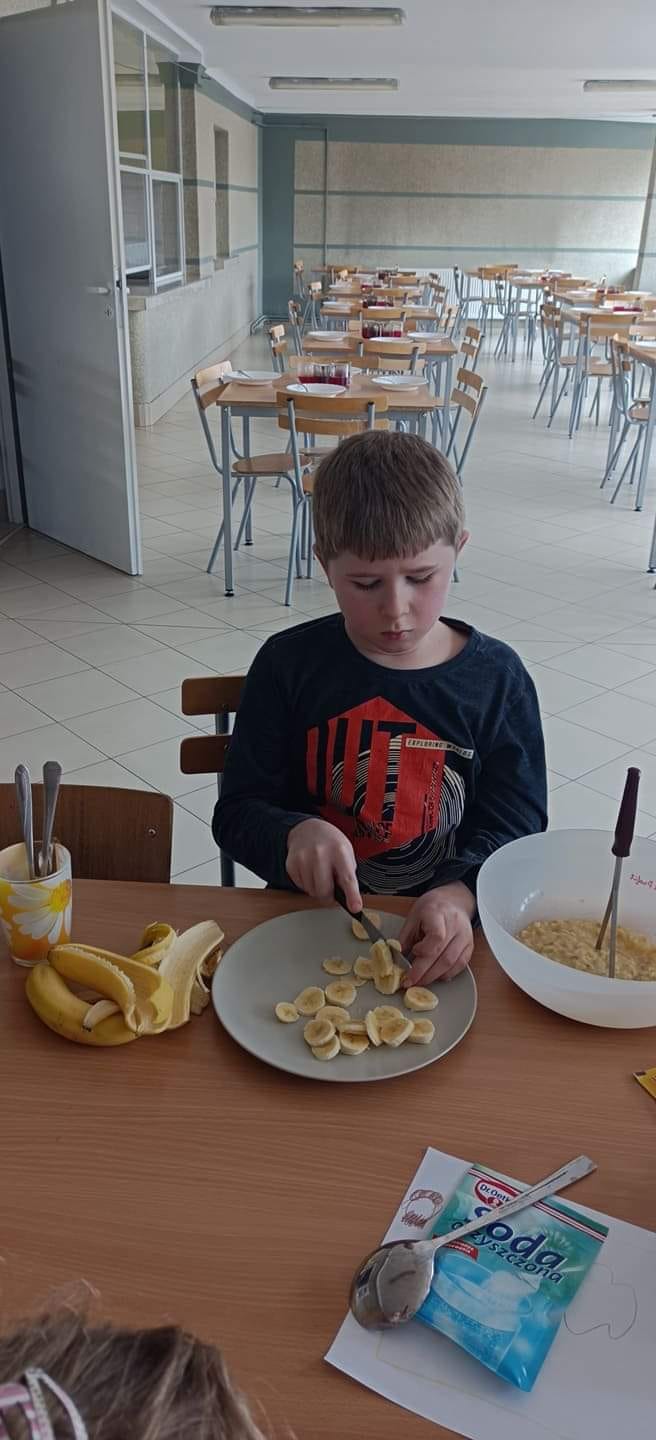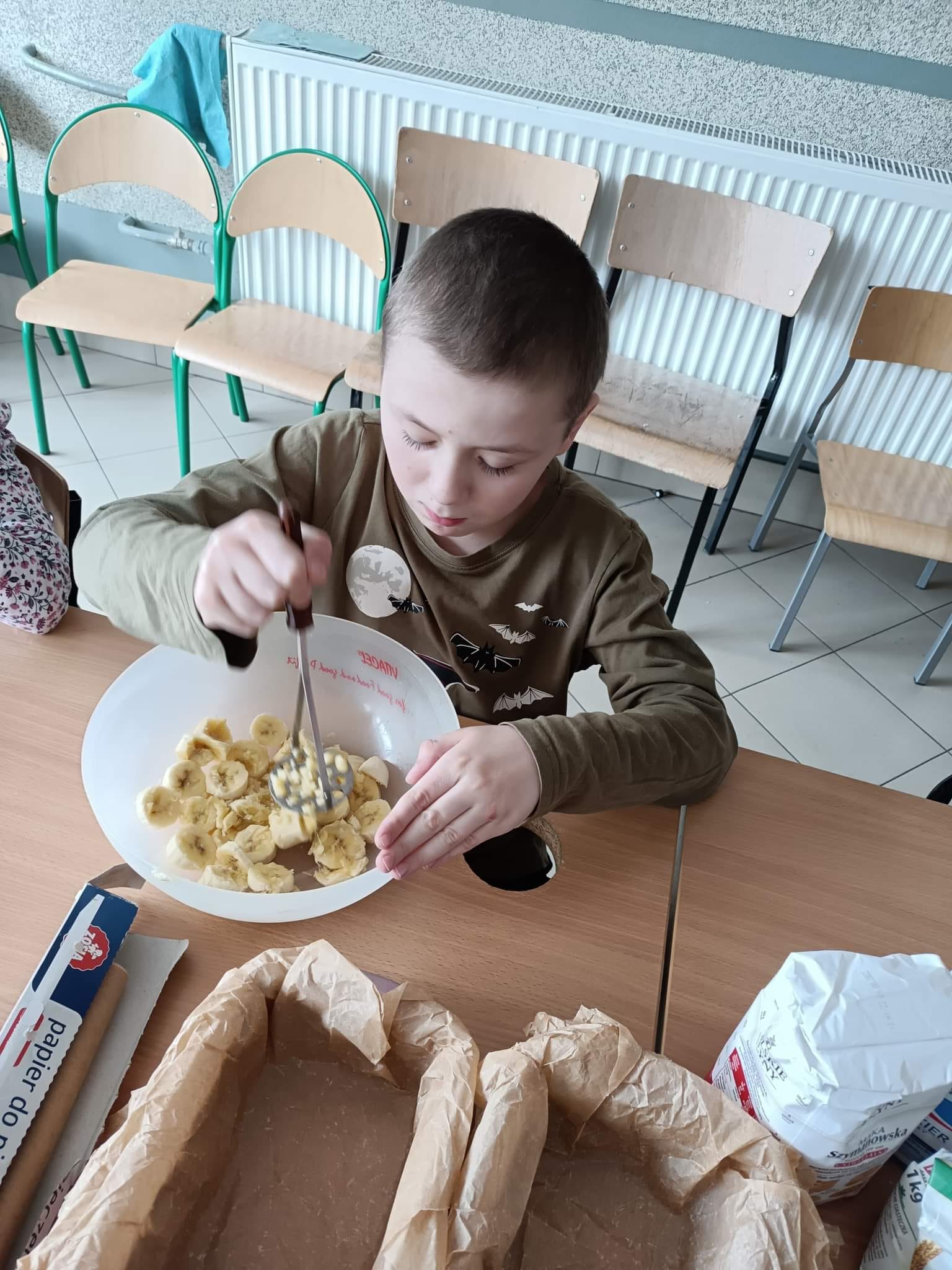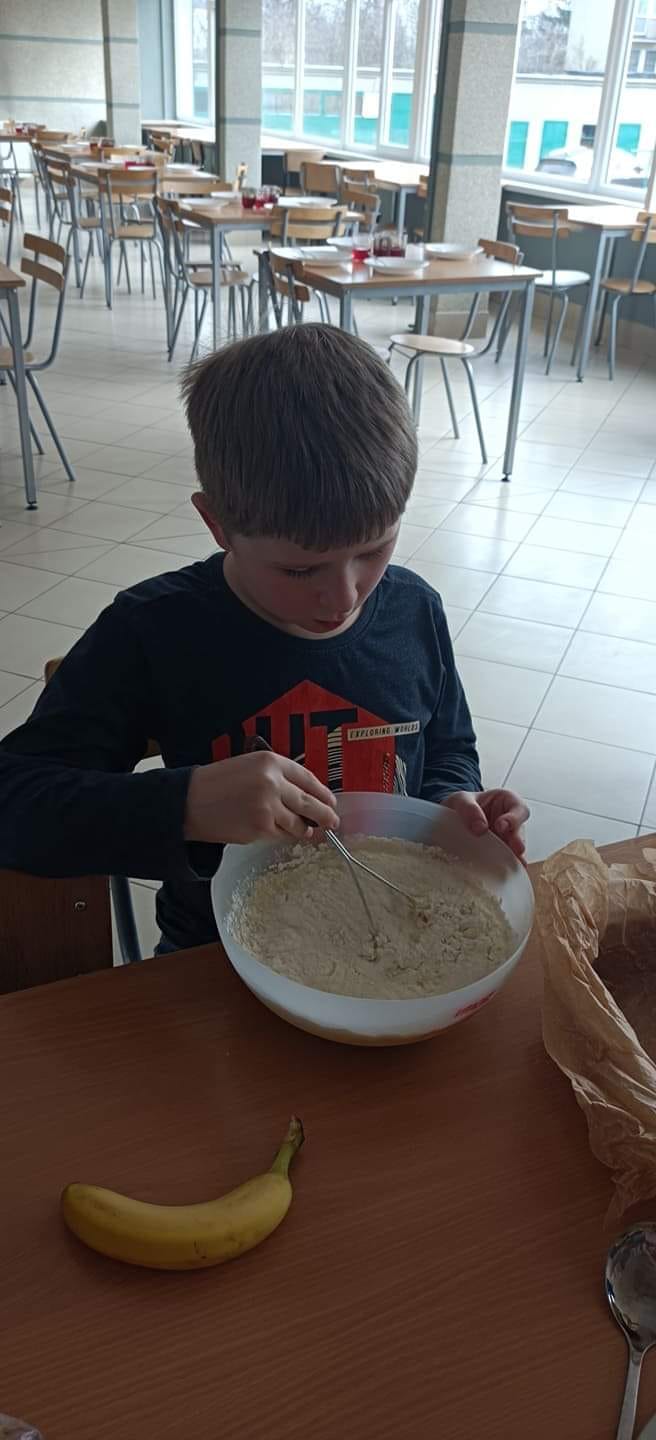 Klasa 1f1 i klasa 1e1 piekły chlebek bananowy.