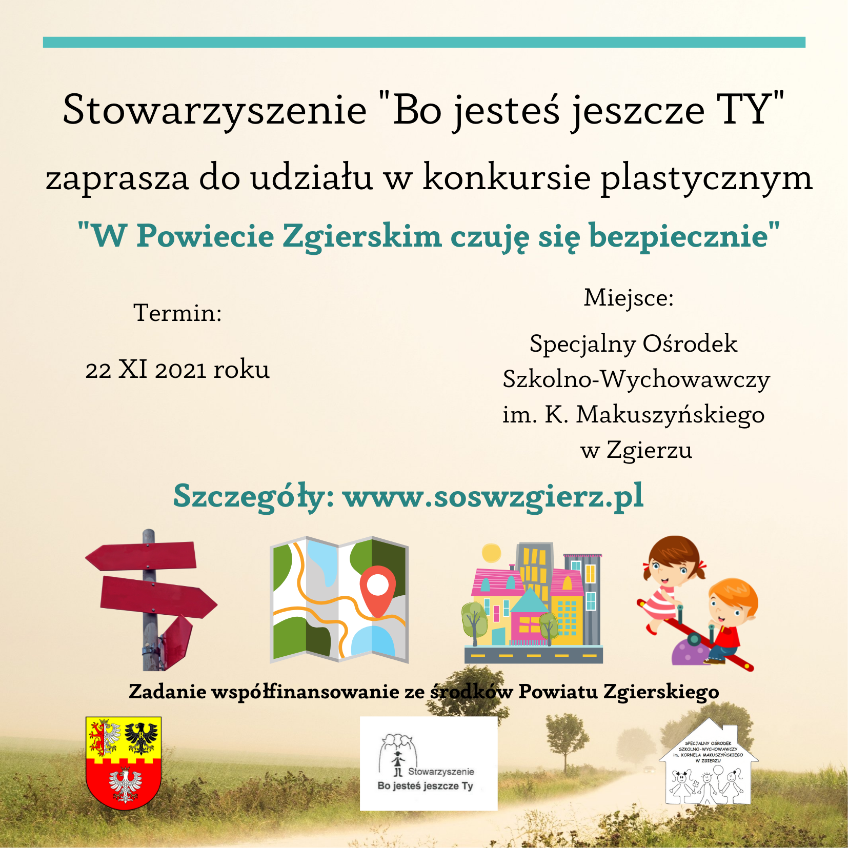 W związku z powyższym zapraszamy wychowanków przedszkola i uczniów szkół do udziału w konkursie plastycznym na plakat pt.: "W Powiecie Zgierskim czuję się bezpiecznie". Prosimy o zapoznanie się