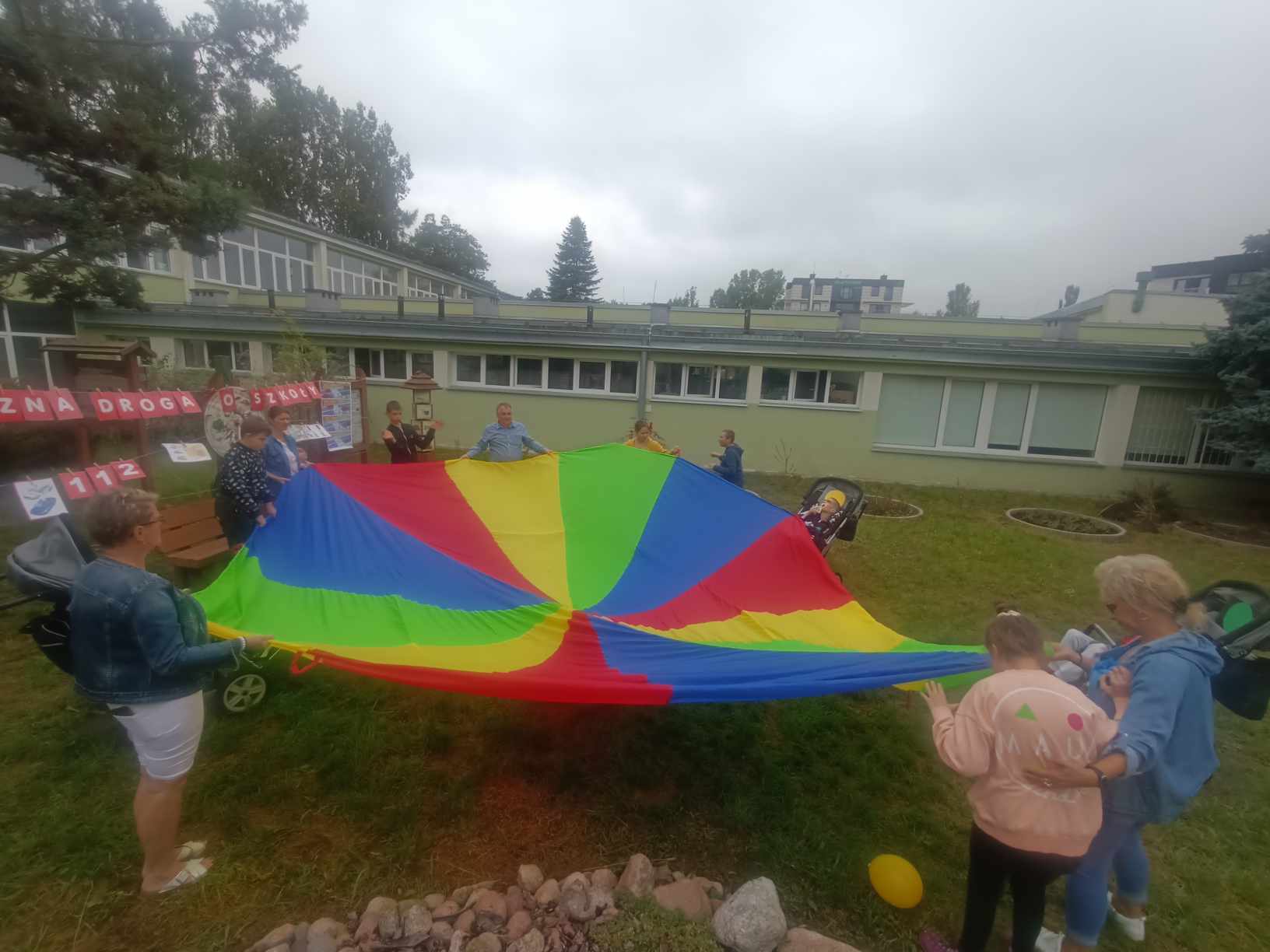 Pierwsza część zajęć miała charakter terenowy podłączony z zabawami ruchowymi i integracyjnymi. W drugiej części uczestnicy zajęć ćwiczyli bezpieczne przejście przez jezdnię przy użyciu maty imitującej pasy, poznawali kolory sygnalizacji świetlnej, znak STOP, numery alarmowe oraz pojazdy służb dbających o bezpieczeństwo.
