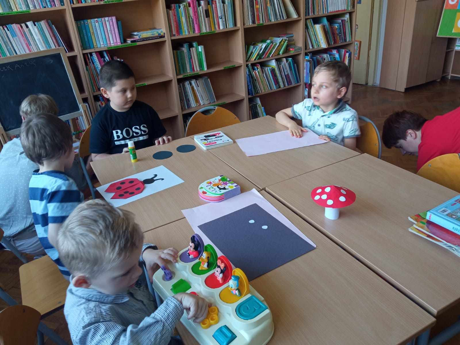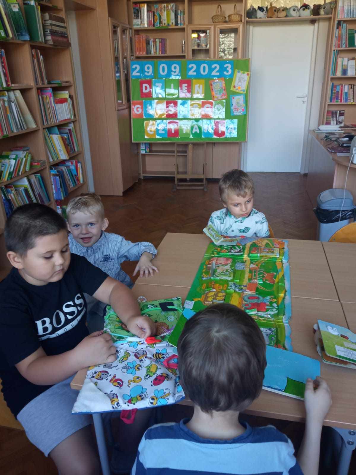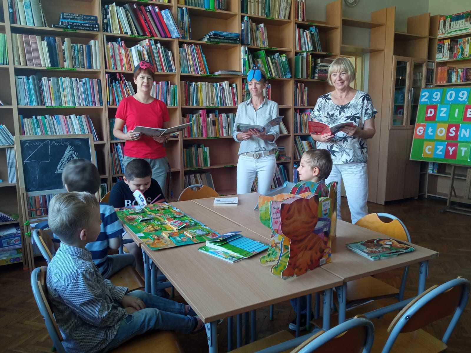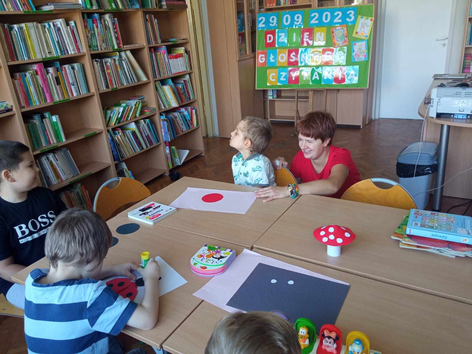 Biedroneczki brały udział w zajęciach edukacyjnych w bibliotece szkolnej w ramach obchodów Dnia Głośnego Czytania. Przedszkolaki zapoznały się z księgozbiorem biblioteki oraz wysłuchały wiersza „Do biedronki przyszedł żuk”.