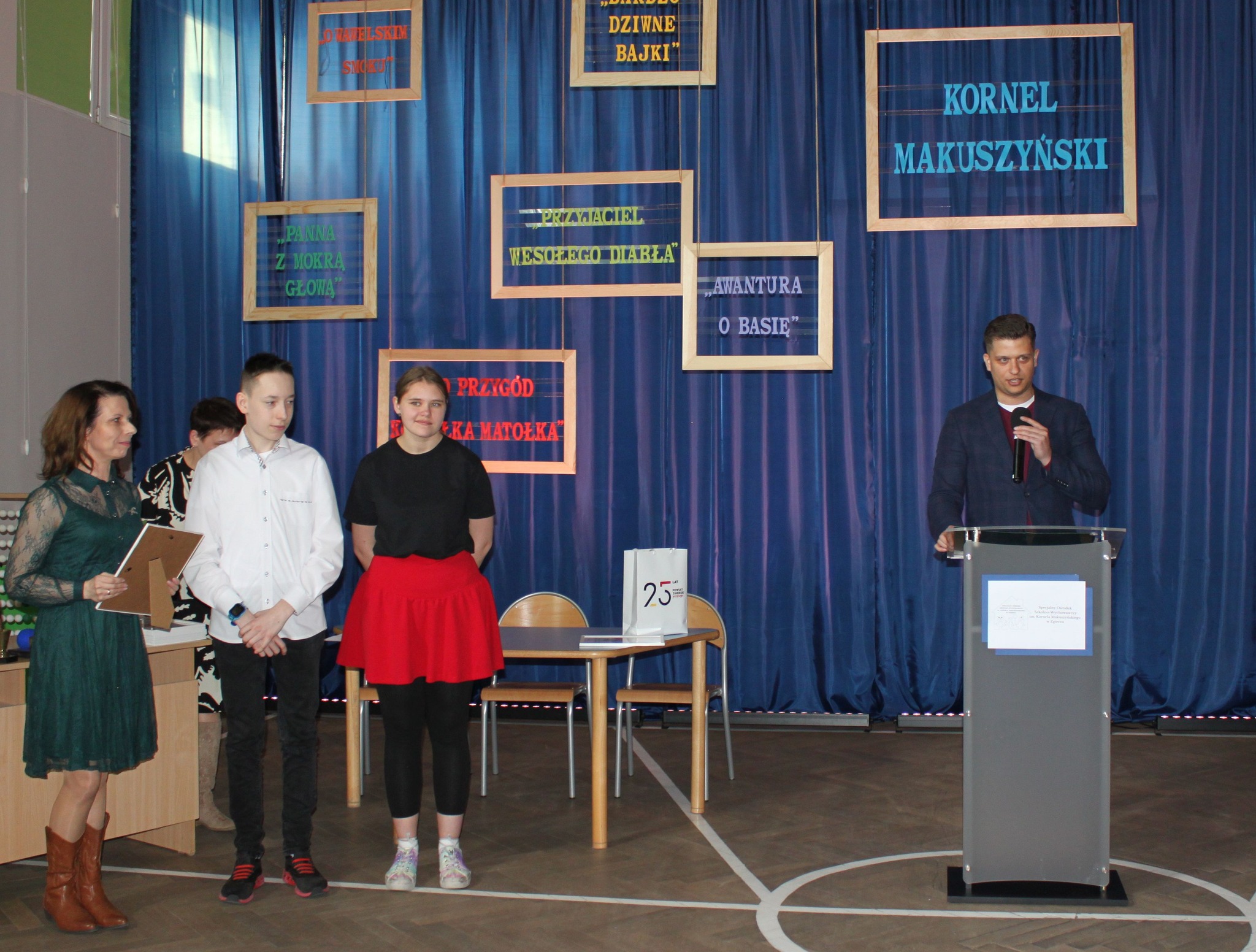27 marca uroczyście obchodziliśmy Dzień Patrona Naszego Ośrodka - Kornela Makuszyńskiego. Swoją obecnością zaszczycili nas pan Marcin Karpiński - Senator RP, wicestarosta zgierski - pan Dominik Gabrysiak, pan Przemysław Staniszewski - Prezydent Miasta Zgierza, członek zarządu Powiatu Zgierskiego - pan Wojciech Brzeski, radni powiatowi: pani Justyna Romanow-Przybylak, pan Rafał Mamiński oraz pracownicy Starostwa Powiatowego w Zgierzu. Wspólnie z nam świętowali także dyrektorzy powiatowych placówek oświatowych i przedstawiciele gminy Zgierz.