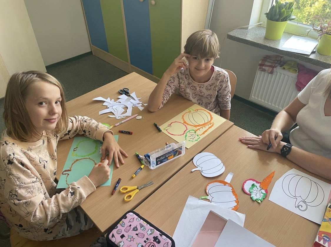 Dziewczynki robiły dekoracje korytarzy - efekt ich pracy zobaczycie niebawem.