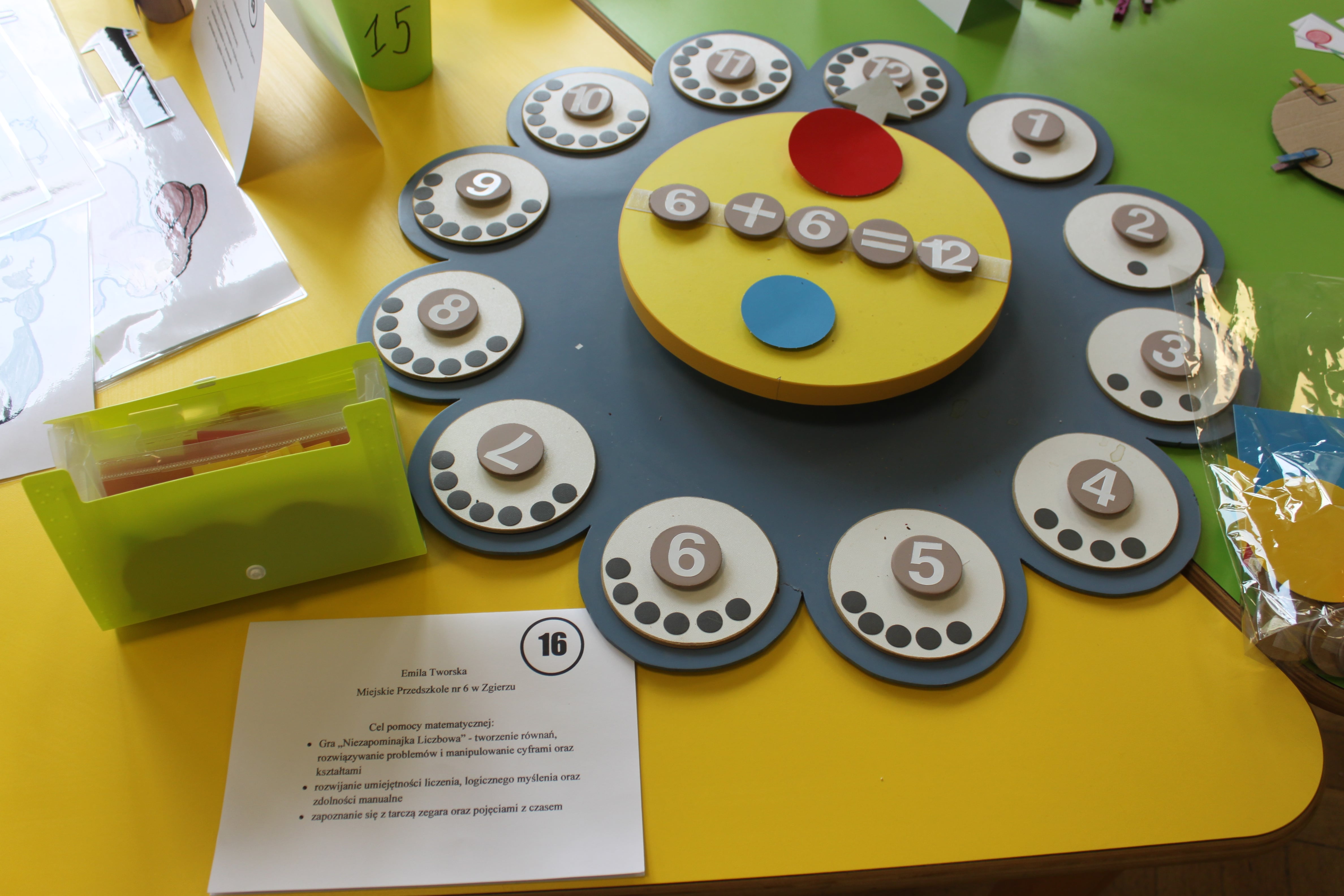 II miejsce - Pani Emilia Tworska, Miejskie Przedszkole nr 6 w Zgierzu, pomoc dydaktyczna: "Zegar";