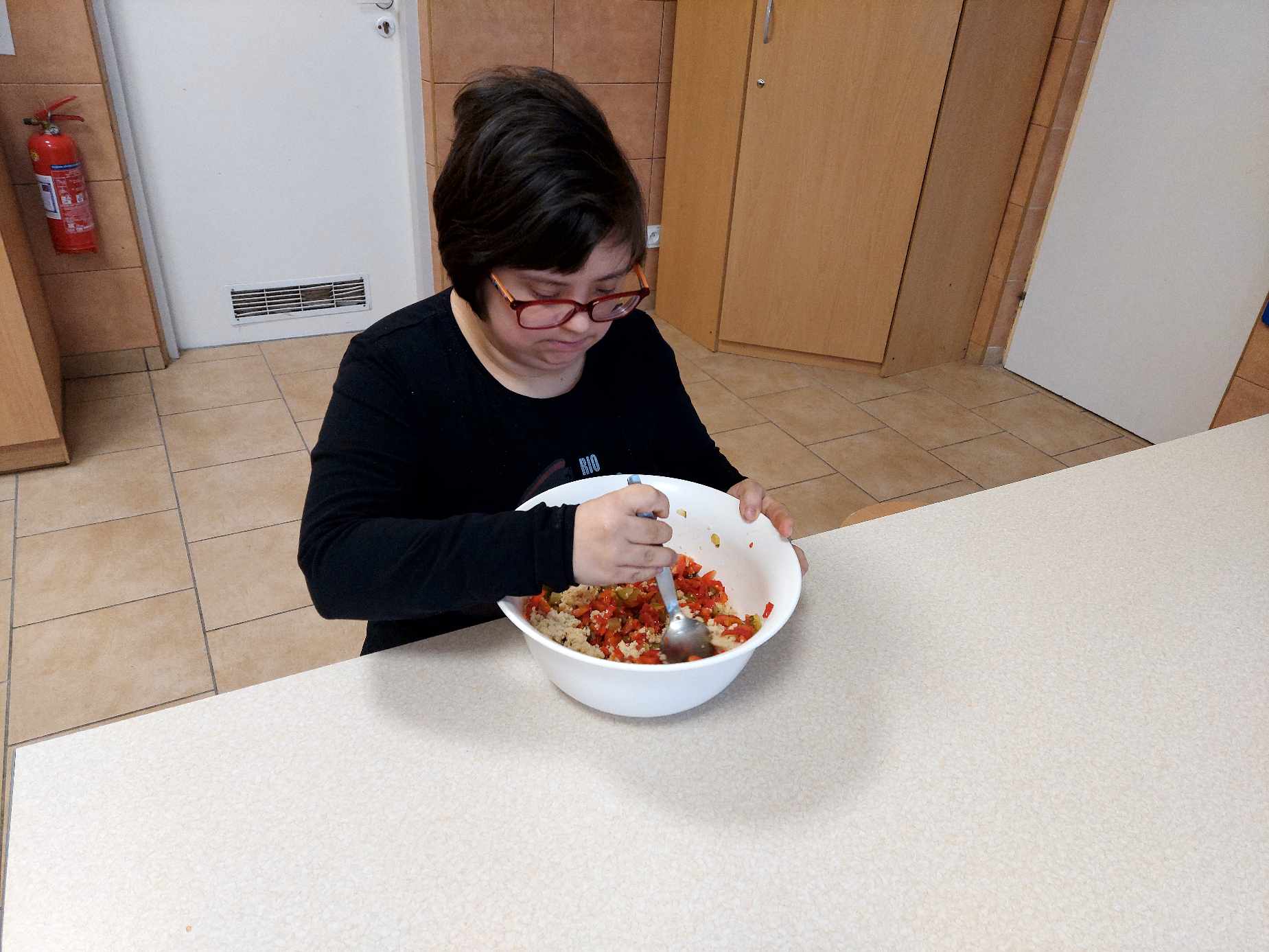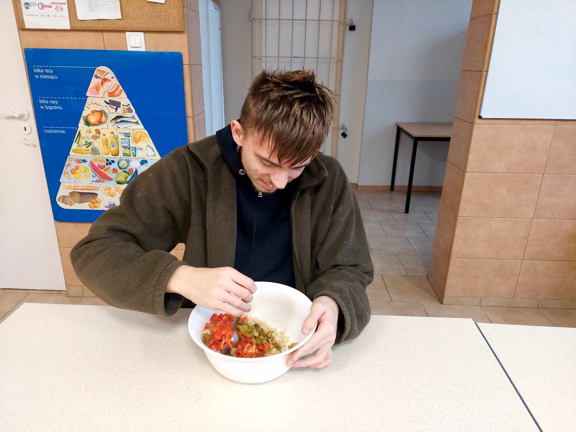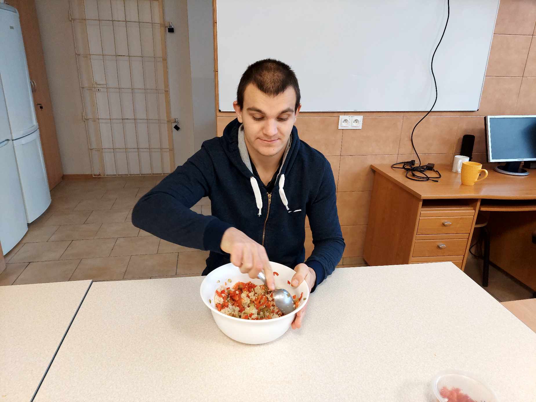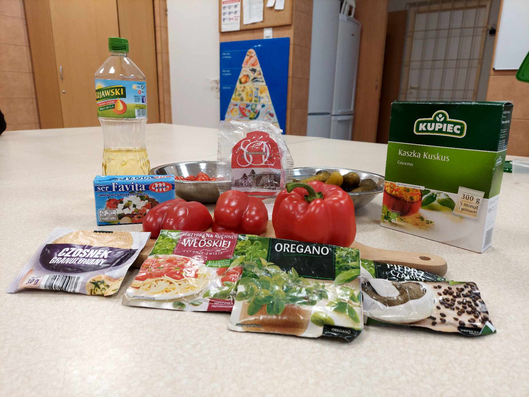 Na zajęciach kulinarnych w klasach PDP - kasza na różne sposoby. Dziś przyrządziliśmy sałatkę z kaszy kuskus ze świeżymi warzywami.