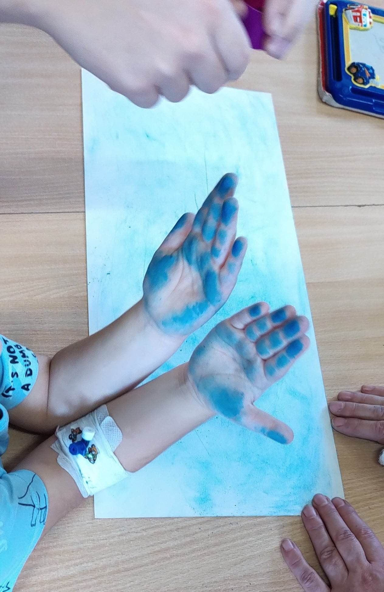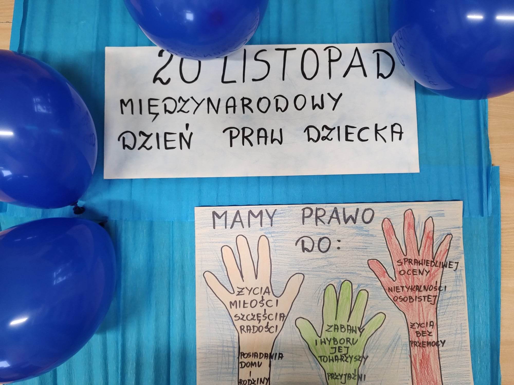 20 listopada dzieci z grupy szpitalnej włączyły się w ośrodkowe obchody Międzynarodowego Dnia Praw Dziecka. Kolor niebieski dominował tego dnia w oddziale. Chore dzieci, nie mogąc fizycznie brać udziału w uroczystości zorganizowanej w SOSW, w świetlicy szpitalnej wykonały okolicznościową pracę plastyczną i zdobyły wiedzę na temat swoich praw.