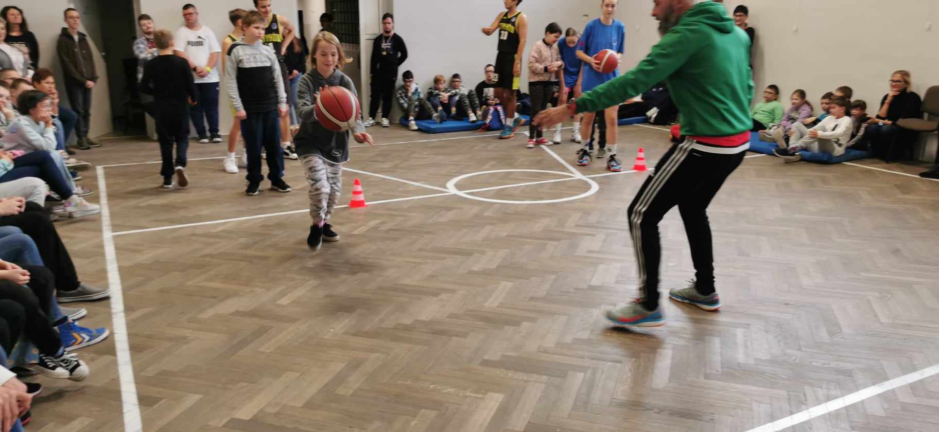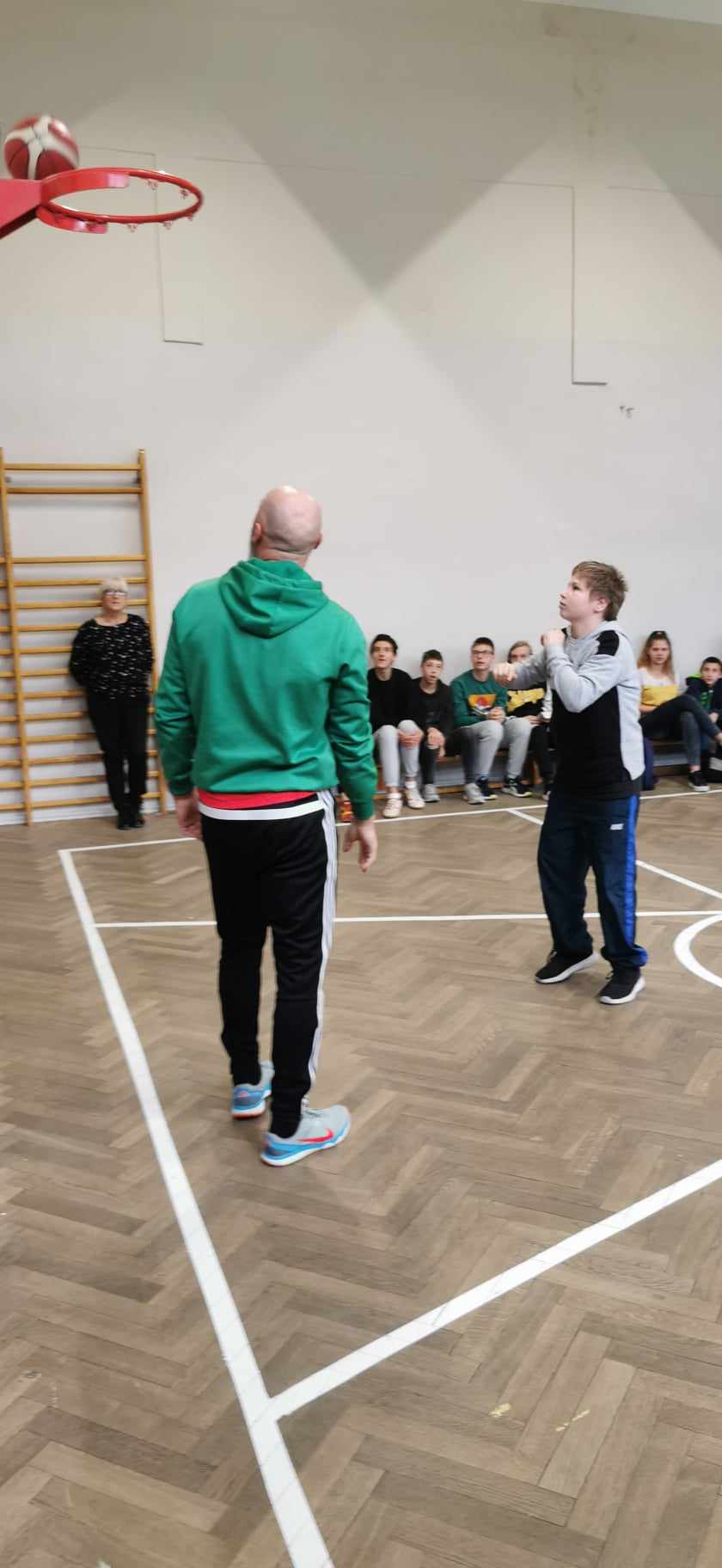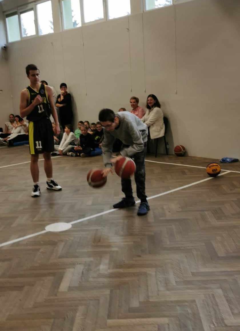 Podczas prowadzonego spotkania uczniowie mogli oglądać rozmaite triki związane z koszykówką, które czasami wydawały się nie do zrobienia. Ponadto nasi uczniowie wspólnie z zawodnikami rozegrali krótki mecz koszykówki. Reprezentanci SOSW w Zgierzu świetnie sobie poradzili, a za odwagę i stawianie czoła wyzwaniom zostali nagrodzeni klubowymi koszulkami.