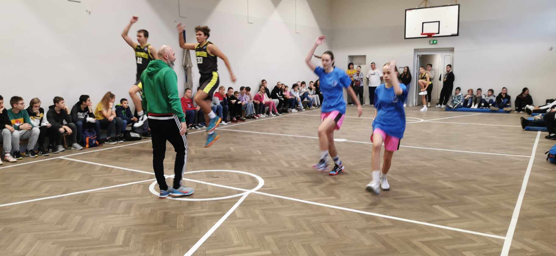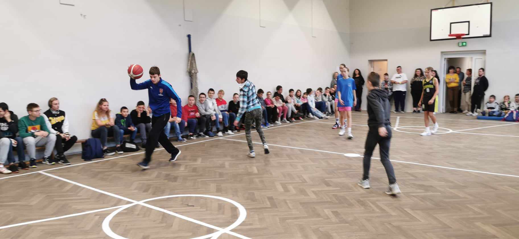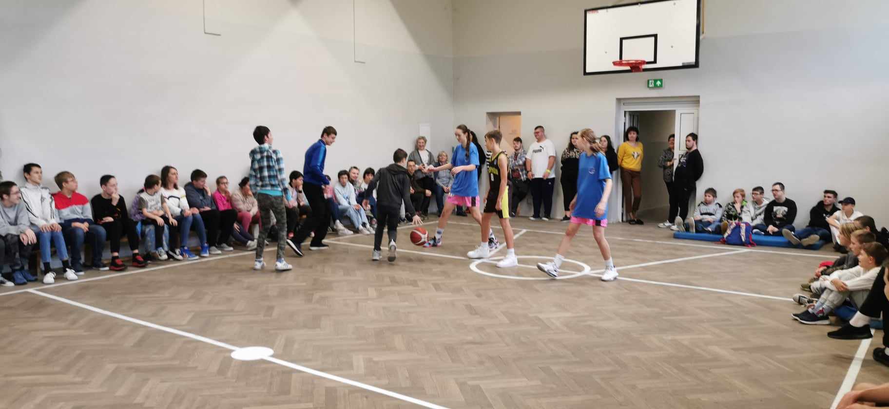 Podczas prowadzonego spotkania uczniowie mogli oglądać rozmaite triki związane z koszykówką, które czasami wydawały się nie do zrobienia. Ponadto nasi uczniowie wspólnie z zawodnikami rozegrali krótki mecz koszykówki. Reprezentanci SOSW w Zgierzu świetnie sobie poradzili, a za odwagę i stawianie czoła wyzwaniom zostali nagrodzeni klubowymi koszulkami.