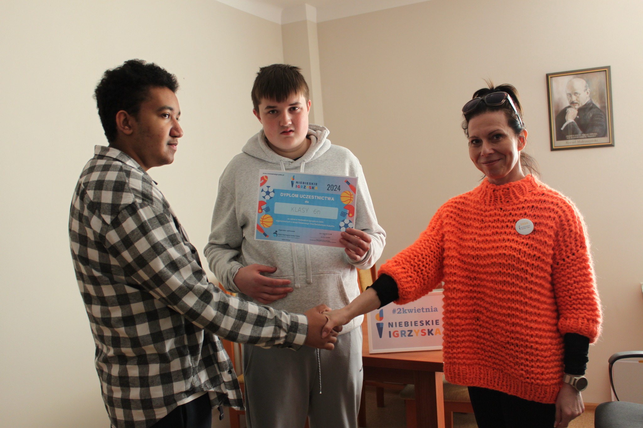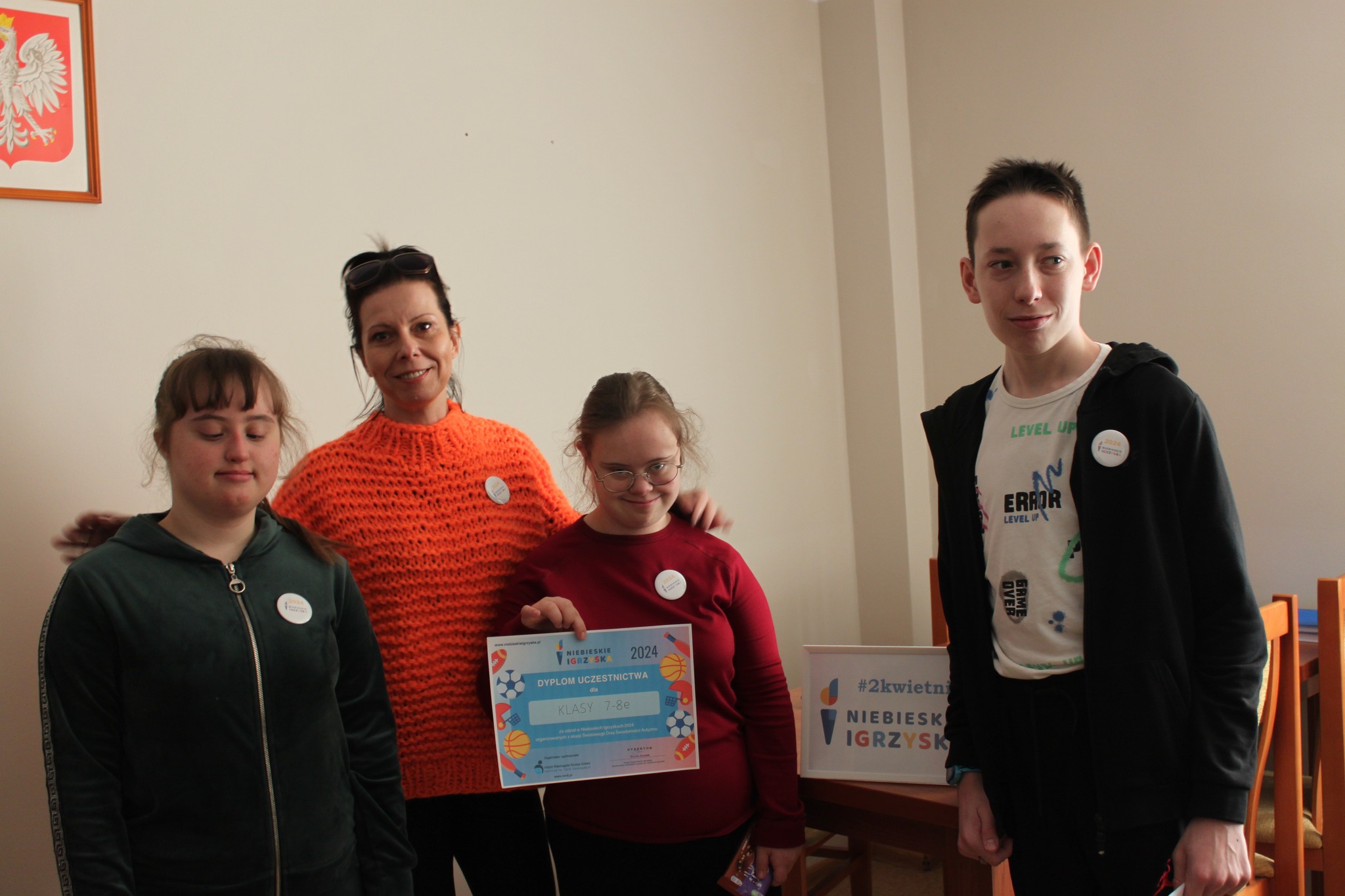 Niebieskie Igrzyska są formą obchodów Światowego Dnia Świadomości Autyzmu. 12 kwietnia i nasz Ośrodek dołączył do ponad 1500 placówek organizujących, a tym samym solidaruzujących się w ten sposób z osobami z spektrum autyzmu i ich rodzinami. Igrzyska rozpoczęliśmy zapalając znicz olimpijski i śpiewając hymn Niebieskich Igrzysk. Następnie przedszkolaki i uczniowie klas młodszych brali udział w zawodach sportowych, zabawach plastyczno - manipulacyjnych, muzycznych i relaksacyjnych. Wszyscy zawodnicy otrzymali medale oraz pamiątkowe dyplomy. Dla całej społeczności szkolnej działał kącik fotografa. Cieszymy się, że mogliśmy być częścią tak pięknej inicjatywy. Dziękujemy i do zobaczenia za rok. Zapraszamy do obejrzenia fotorelacji.