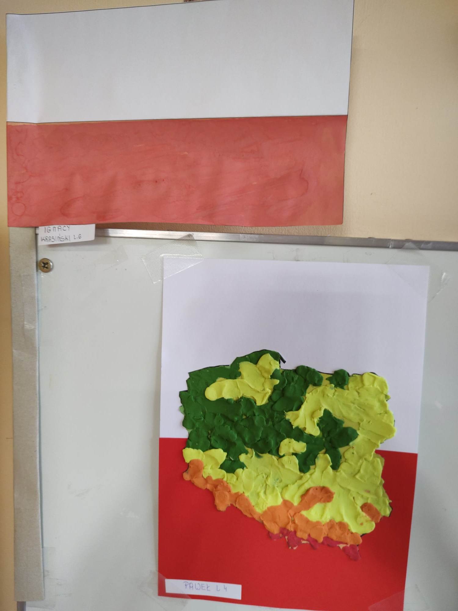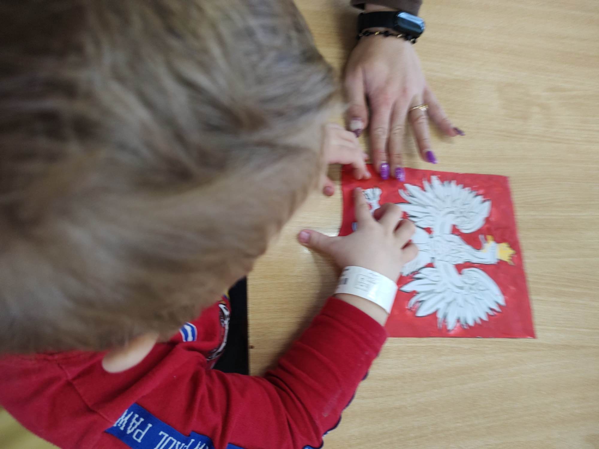 Młodzi pacjenci do Święta Niepodległości przygotowali się wykonując prace plastyczne różnymi technikami: malowali świecą w konturach Orła, plastelinę wykorzystali do wylesiania mapy Polski i tła Godła Polski, farbą pomalowali flagę państwową.