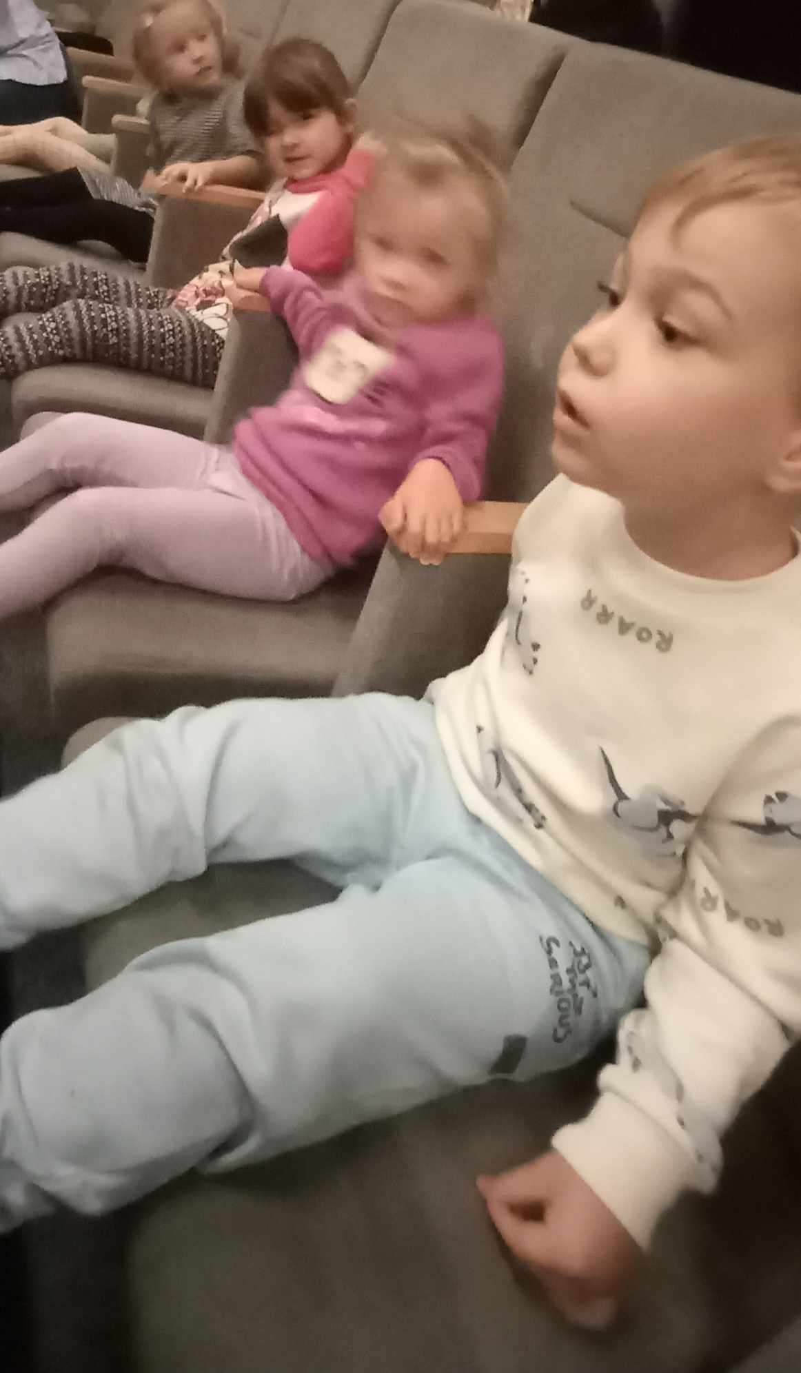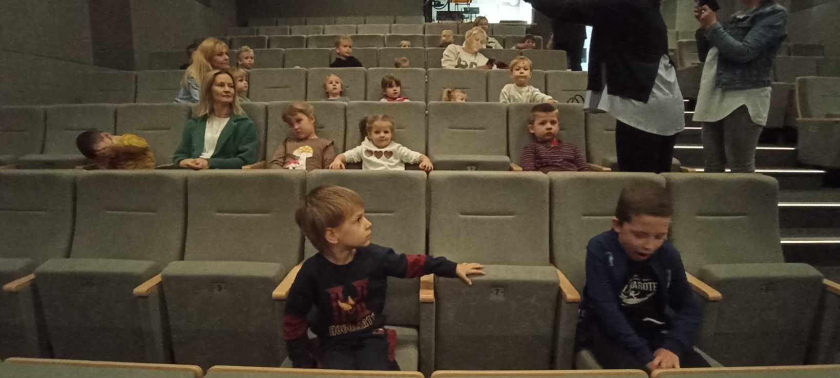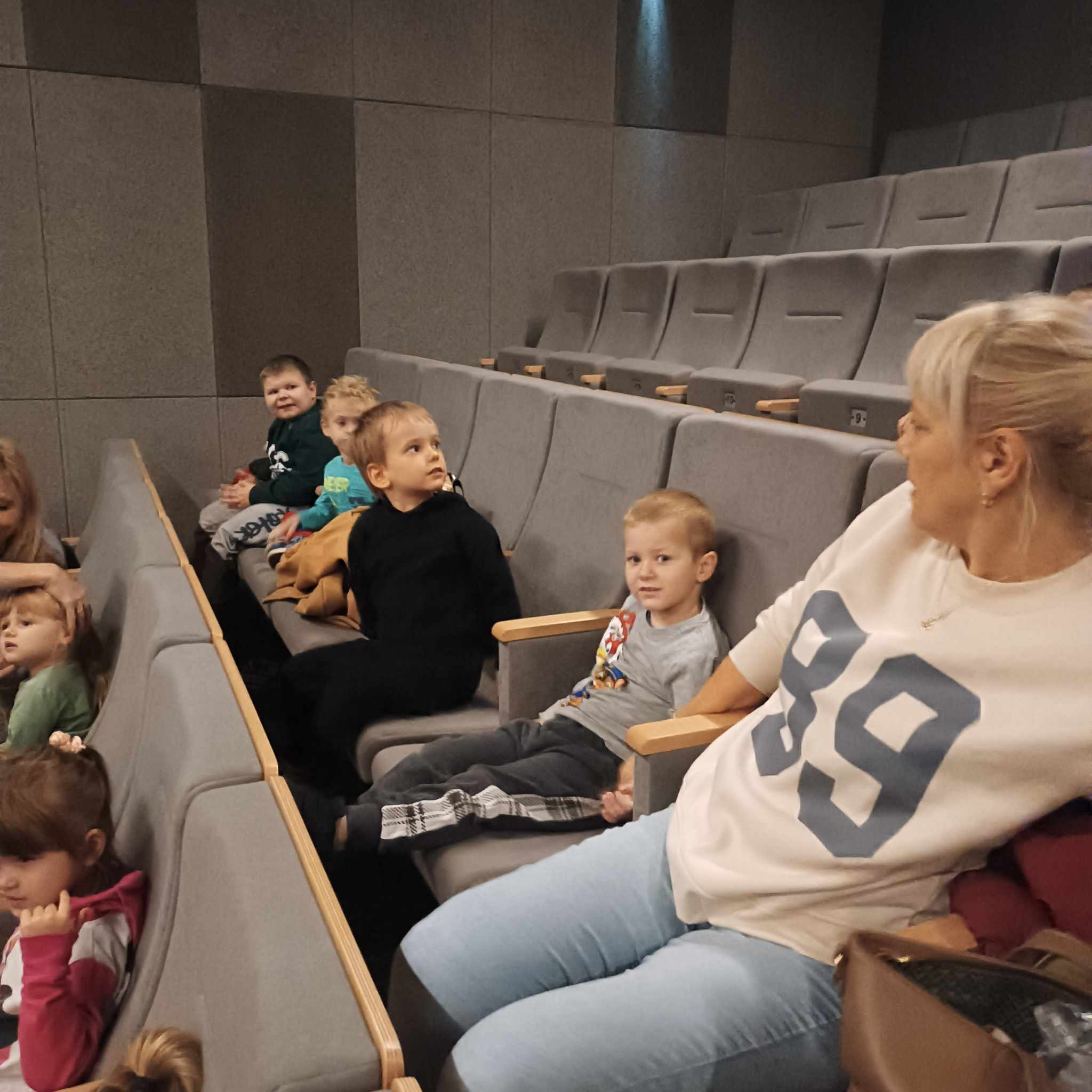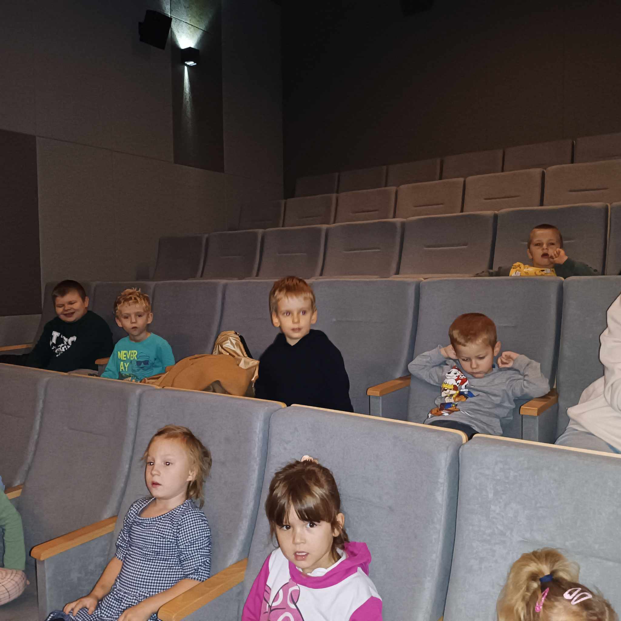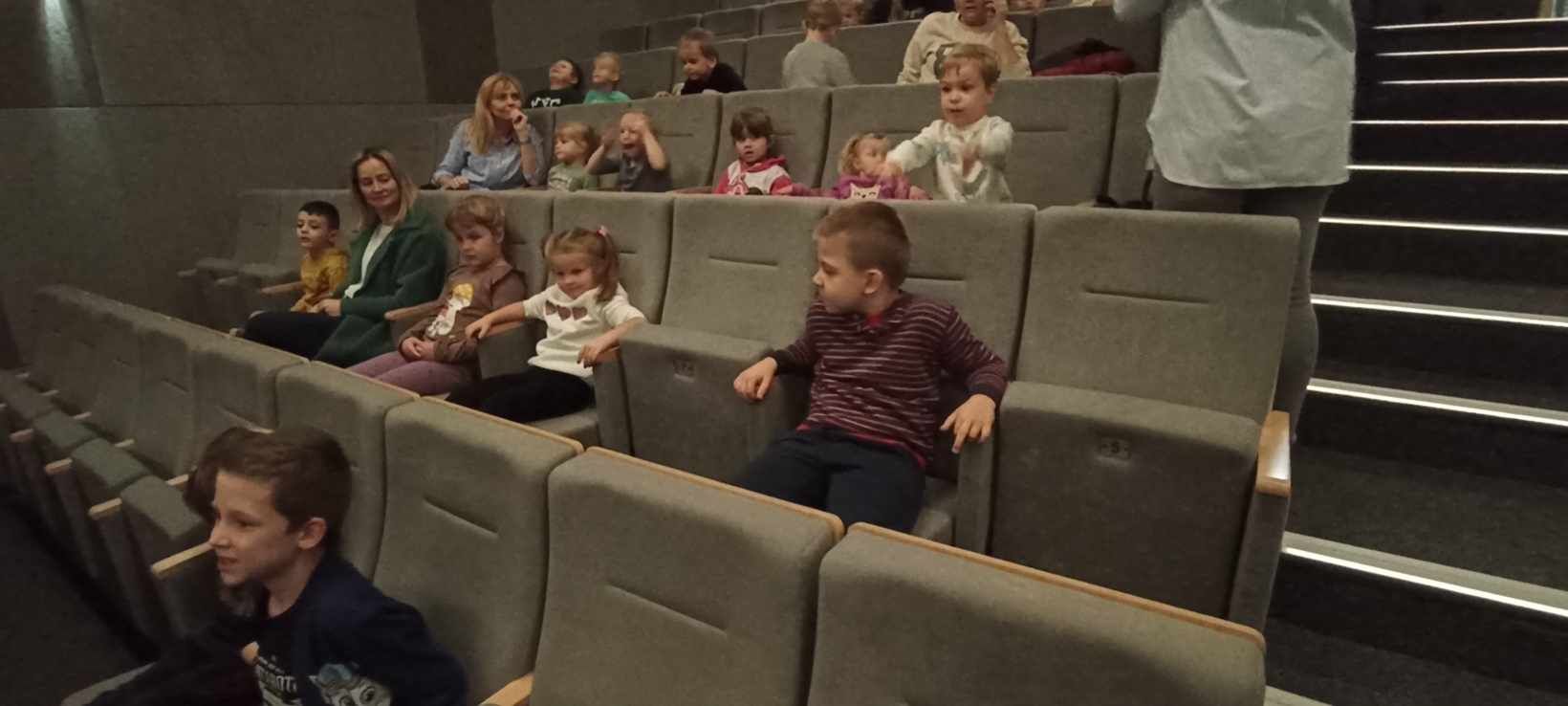 12 października 2023 przedszkolaki z grup Misiów, Krasnoludków, Skrzatów, Delfinków i Pszczółek obejrzały bajkę "Kicia Kocia mówi: Dzień Dobry" w kinie w Starym Młynie w Zgierzu.