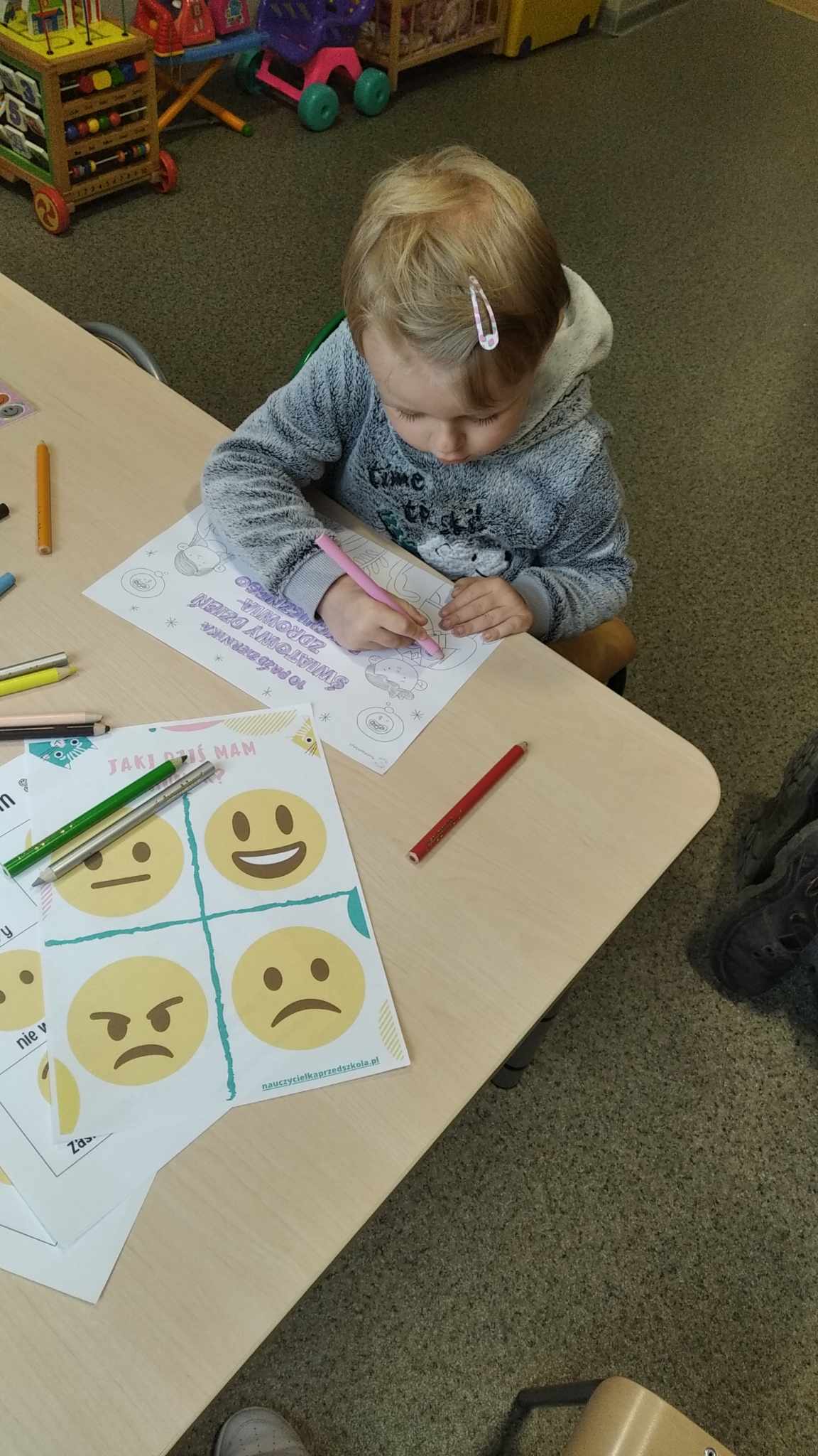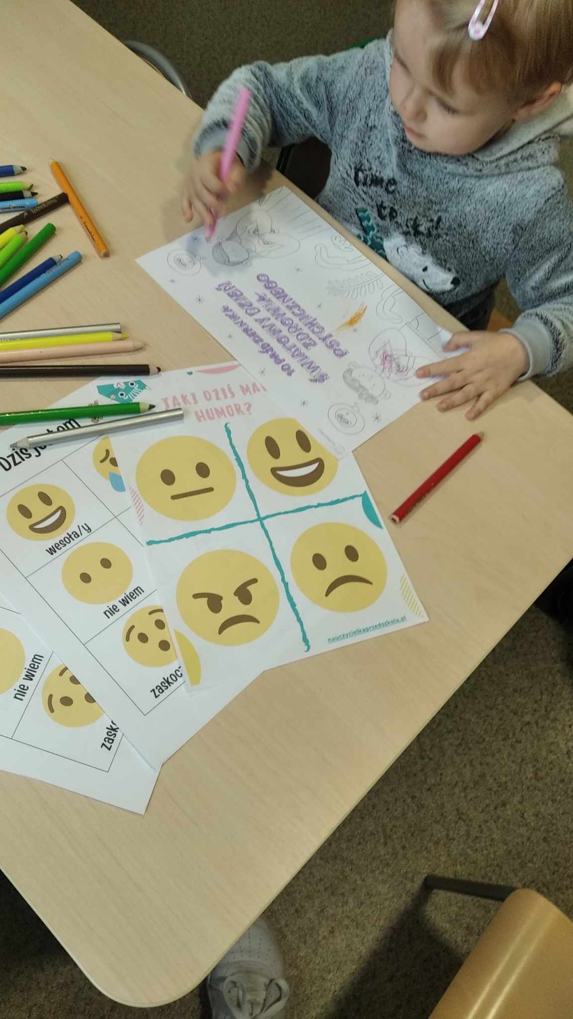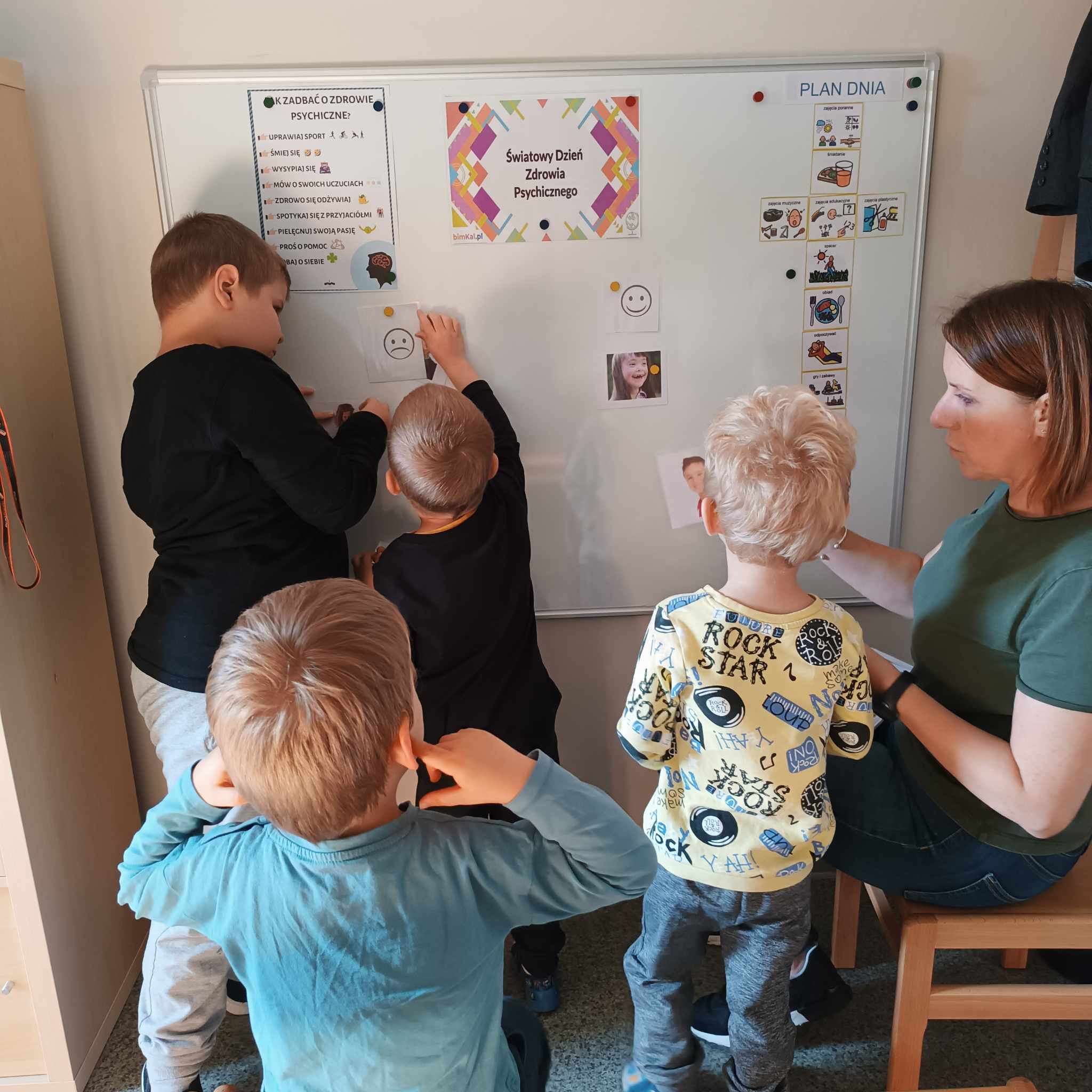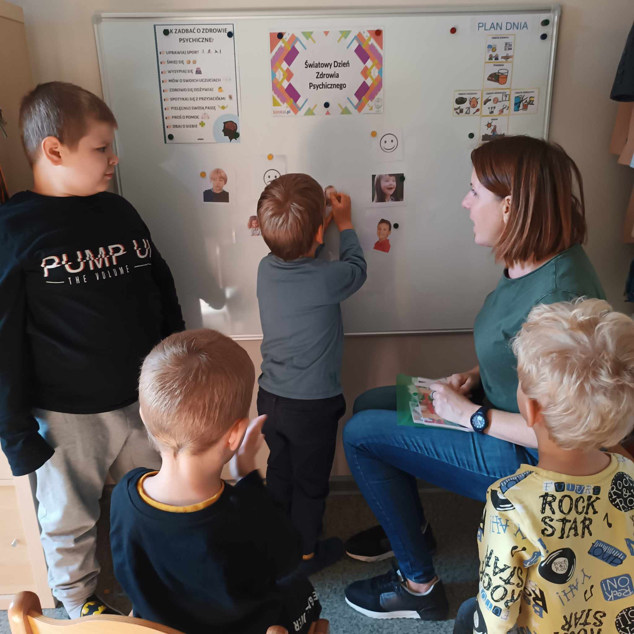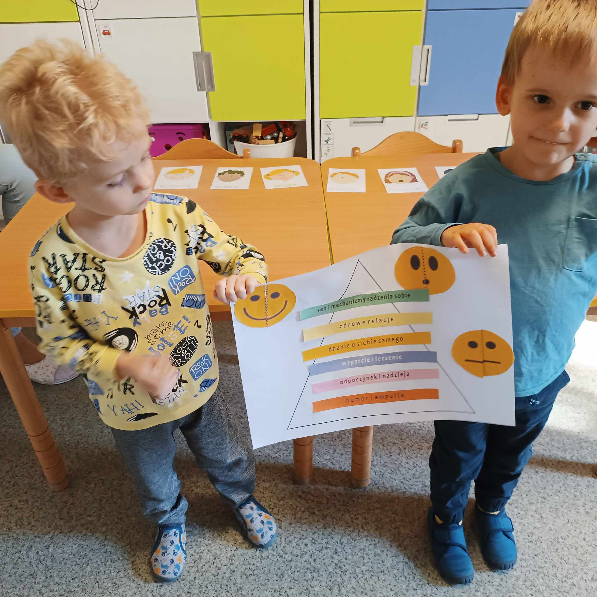 W dniu 10 października 2023 przedszkolaki obchodziły Dzień Zdrowia Psychicznego. W tym dniu uczyły się o tym, jak ważne jest mówienie o swoich uczuciach i dzielenie ich z innymi. Rozpoznawały oraz nazywały emocje przedstawione na ilustracjach. Pamiętajmy, że wszystkie towarzyszące nam uczucia są właściwe i każdy z nas może je przeżywać, ale trzeba wybrać odpowiedni sposób, by sobie z nimi poradzić.