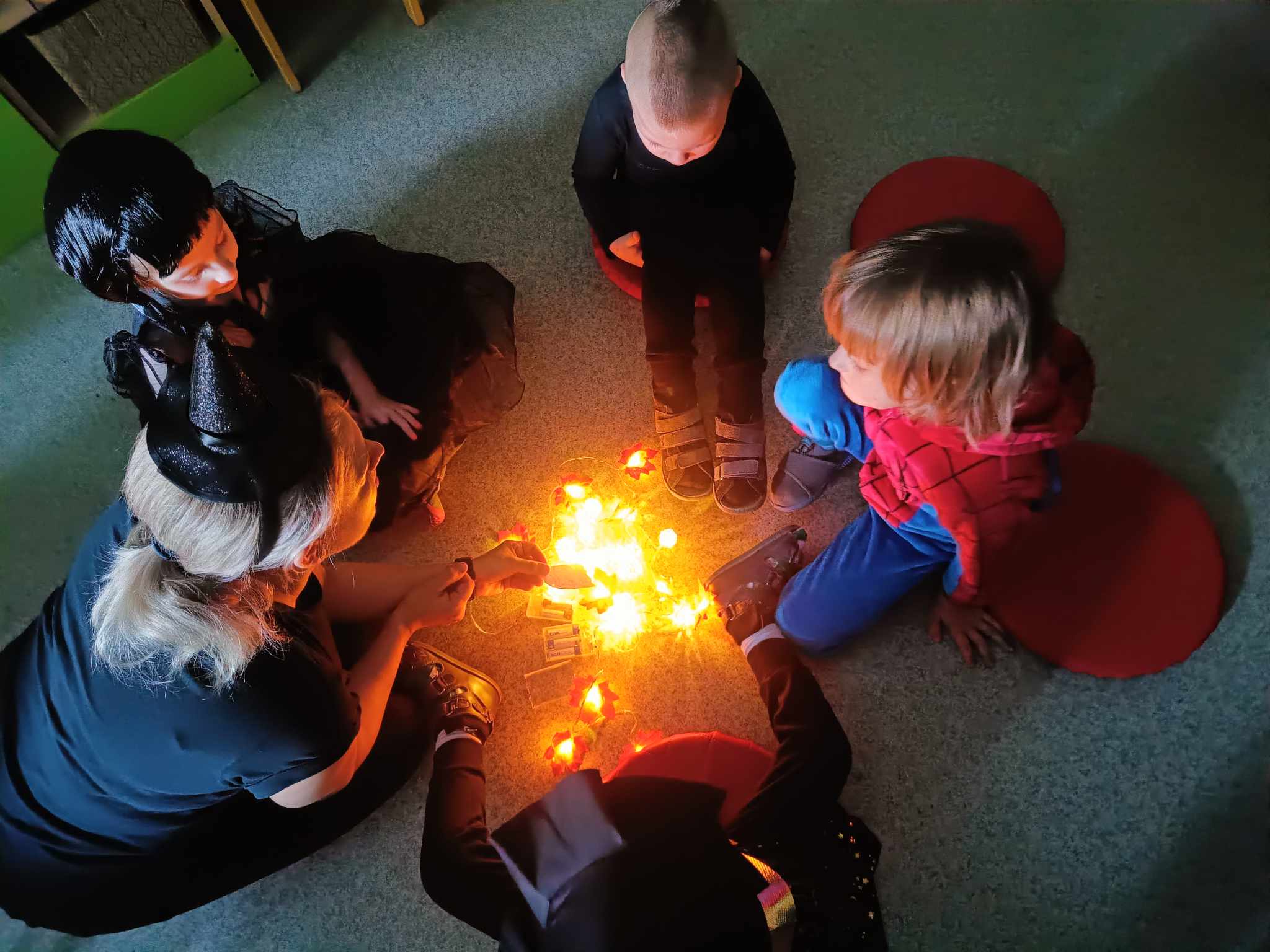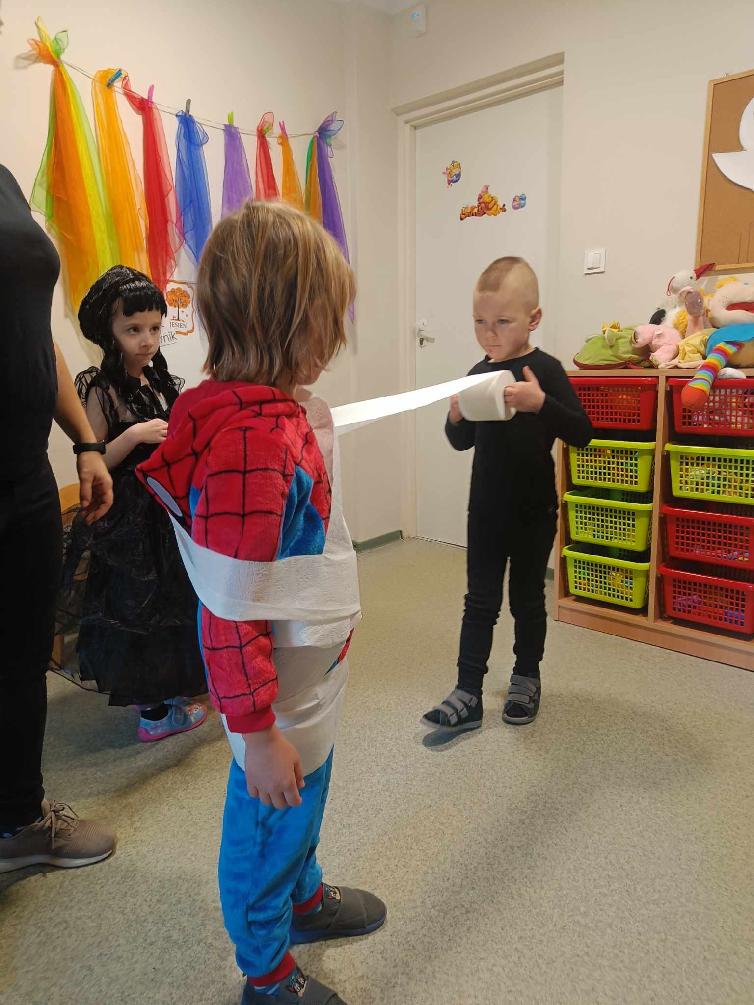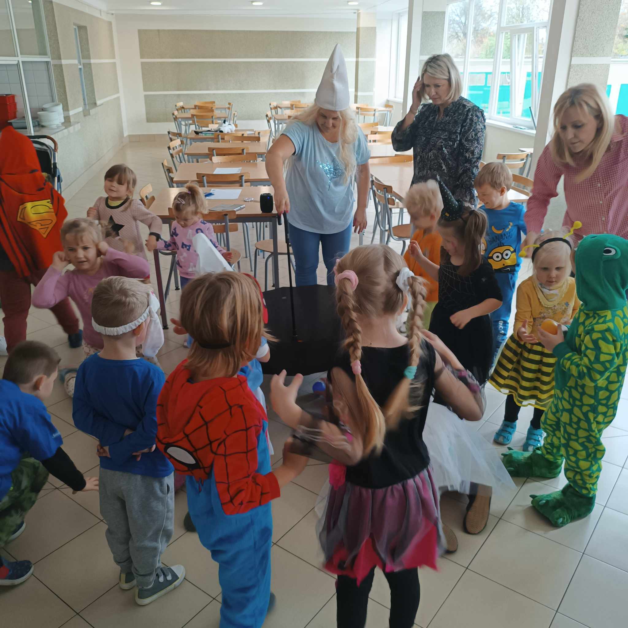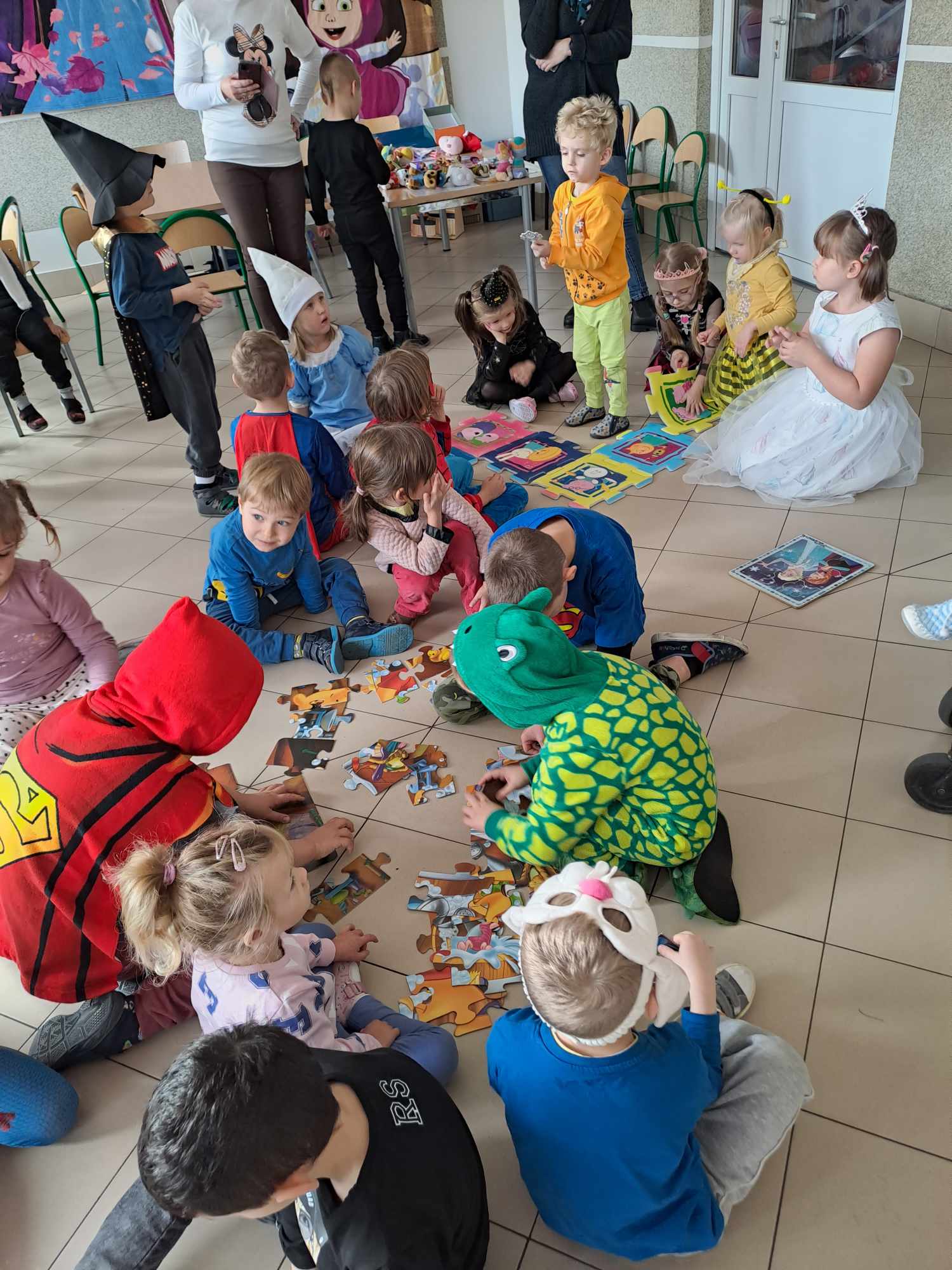 Grupa Puchatków i Delfinków poznawała tradycje i zwyczaje związane z amerykańskim świętem Halloween. Na przedszkolaków czekało mnóstwo atrakcji tj. zabawy przy muzyce, projekcja filmowa, mumia, dyniowy golf, gimnastyka buzi i języka z duszkami do podświetlania. Krótko mówiąc: zabawa była super!