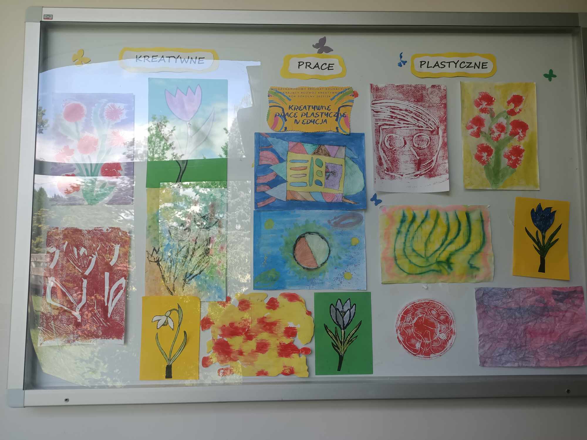 Wyróżnione dzieła z ostatniej wiosennej odsłony zaprezentowane zostały w jednej ze szkolnych gablot. Zainteresowanych kreatywną twórczością pozostałych naszych podopiecznych oraz wszystkich uczestników projektu zapraszamy na stronę organizatora http://kreatywnepraceplastyczne.blogspot.com lub profil w serwisie społecznościowym FACEBOOK.