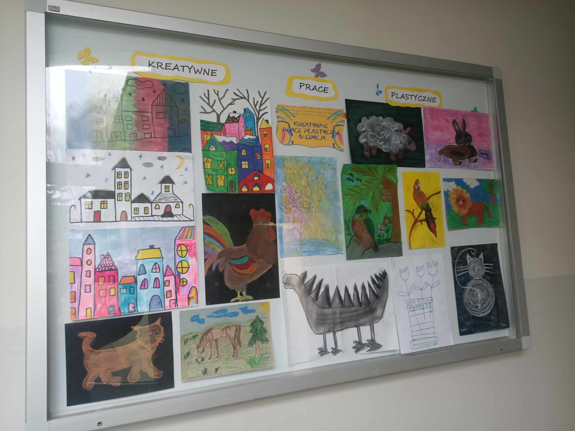 Wyróżnione dzieła zaprezentowane zostały w specjalnie do tego przygotowanej gablocie. Zainteresowanych kreatywną twórczością pozostałych naszych podopiecznych oraz wszystkich uczestników projektu zachęcamy do obserwacji strony organizatora http://kreatywnepraceplastyczne.blogspot.com lub profilu w serwisie społecznościowym FACEBOOK.
