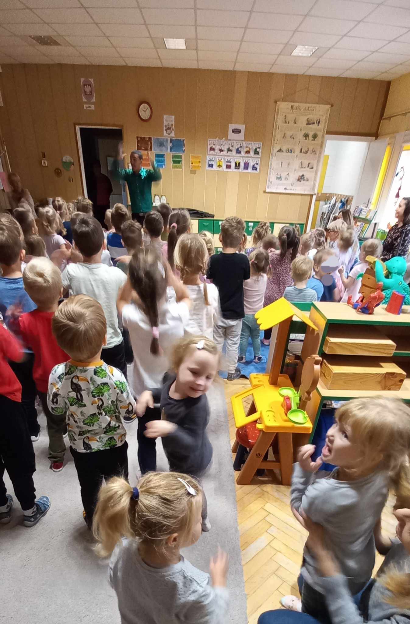 Krasnoludki na Akademii Muzycznej w Miejskim Przedszkolu nr 6 w Zgierzu - tematem przewodnim były gorące tańce kubańskie.