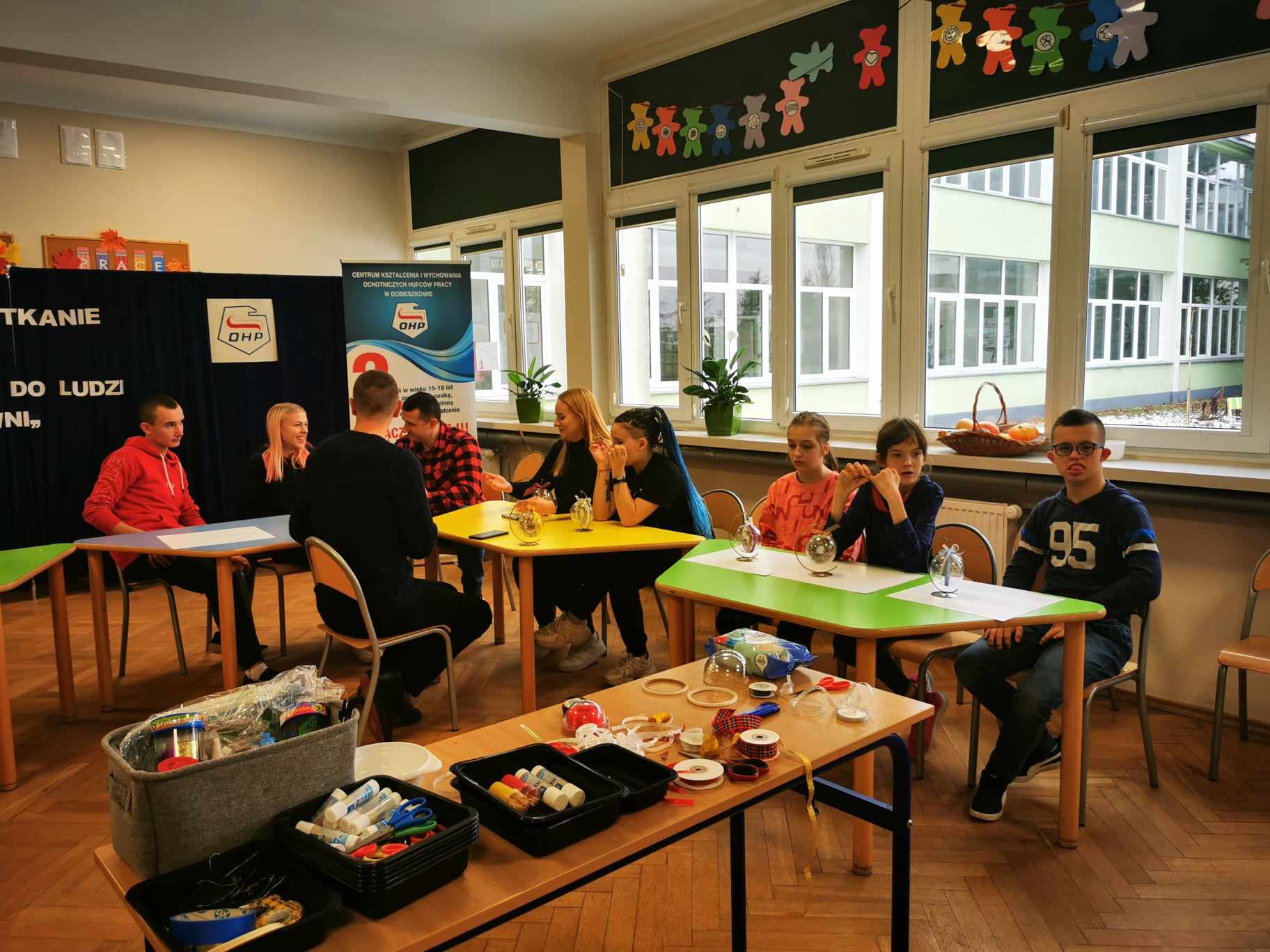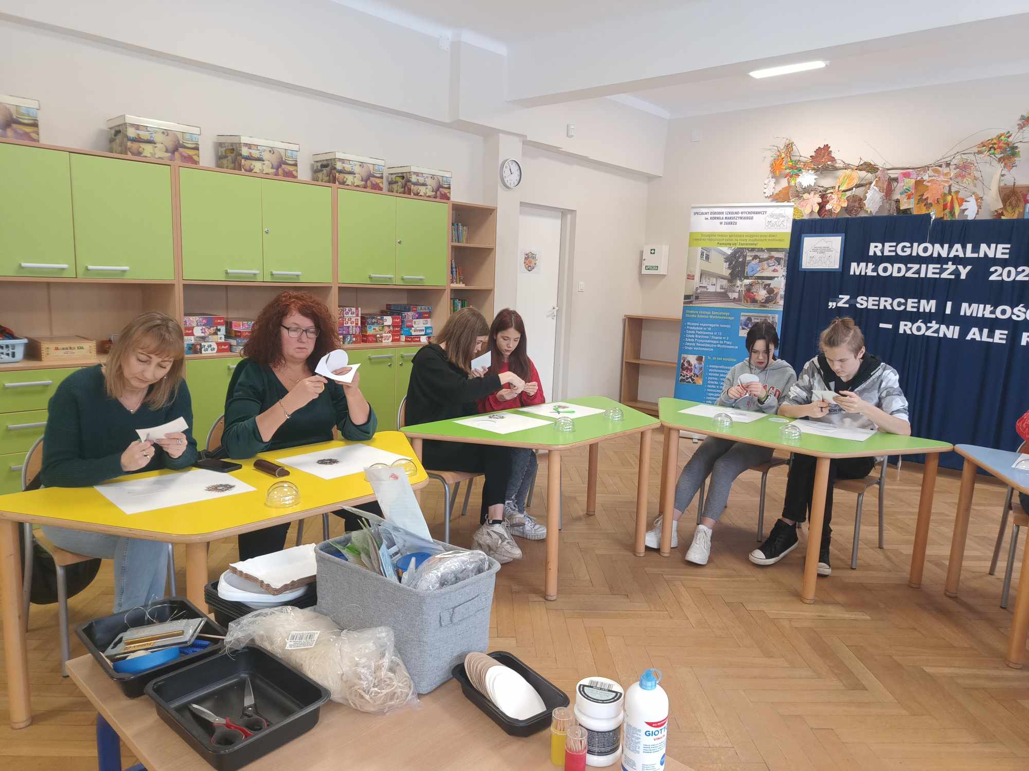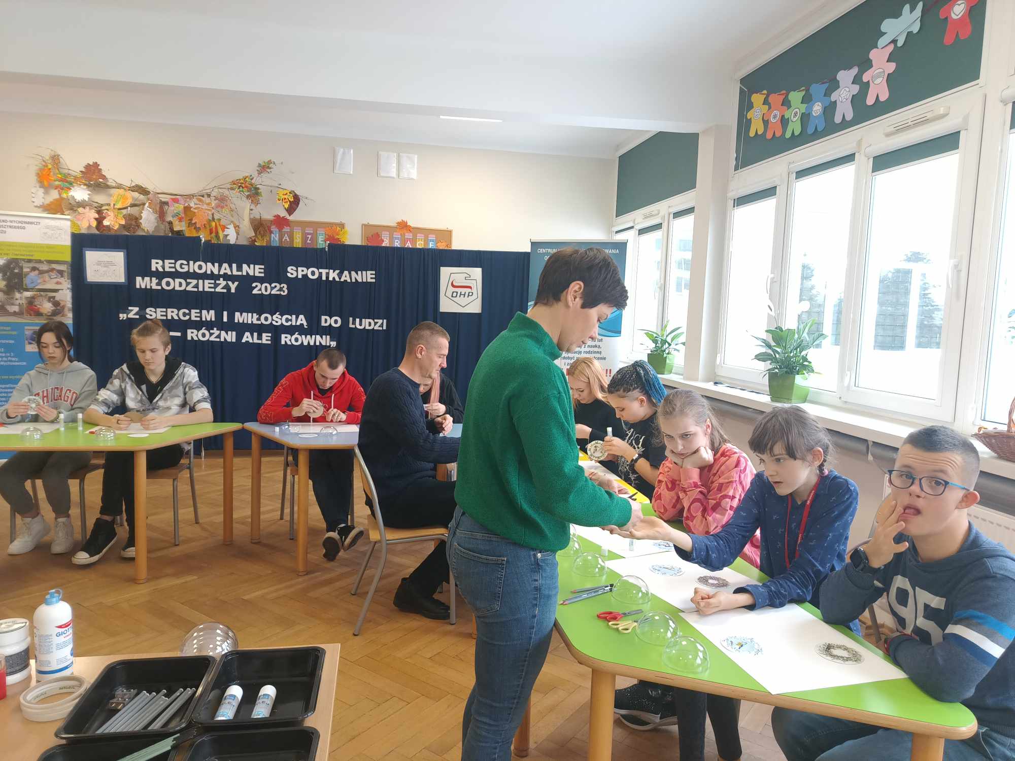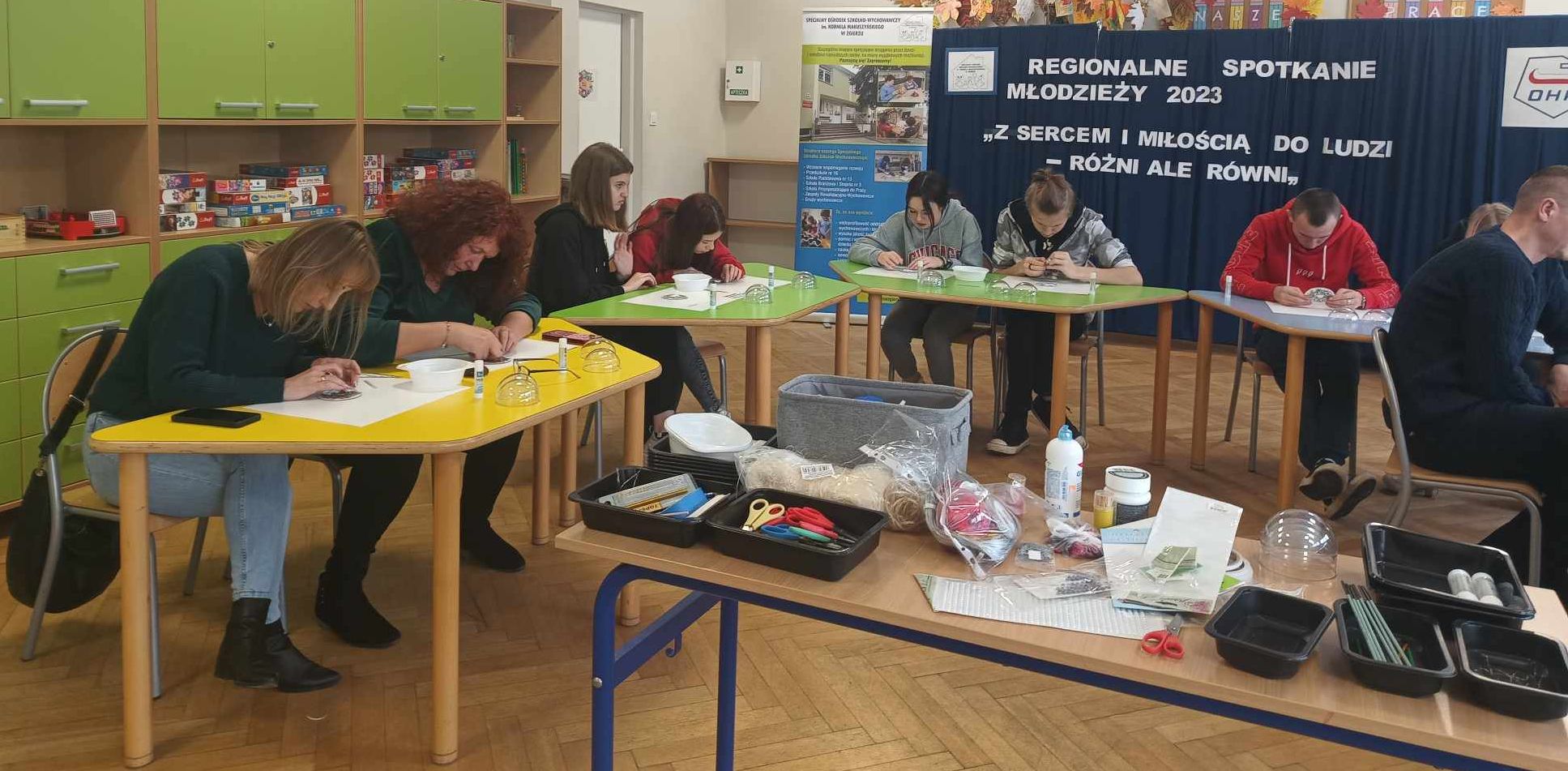 W ostatnich dniach w naszym Ośrodku odbyło się Regionalne Spotkanie Młodzieży pod hasłem "Z sercem i miłością do ludzi - Różni ale Równi". Spotkanie miało na celu pokazać młodym ludziom, że każda różnica jest wzbogacająca i budująca dla społeczności, w której żyją. Jak również, że bez względu na różnice łączą ich te same prawa, marzenia, potrzeby czy obawy. Podczas wspólnych warsztatów plastycznych uczniowie naszej szkoły wraz z gośćmi wspólnie wykonali bombki bożonarodzeniowe.
