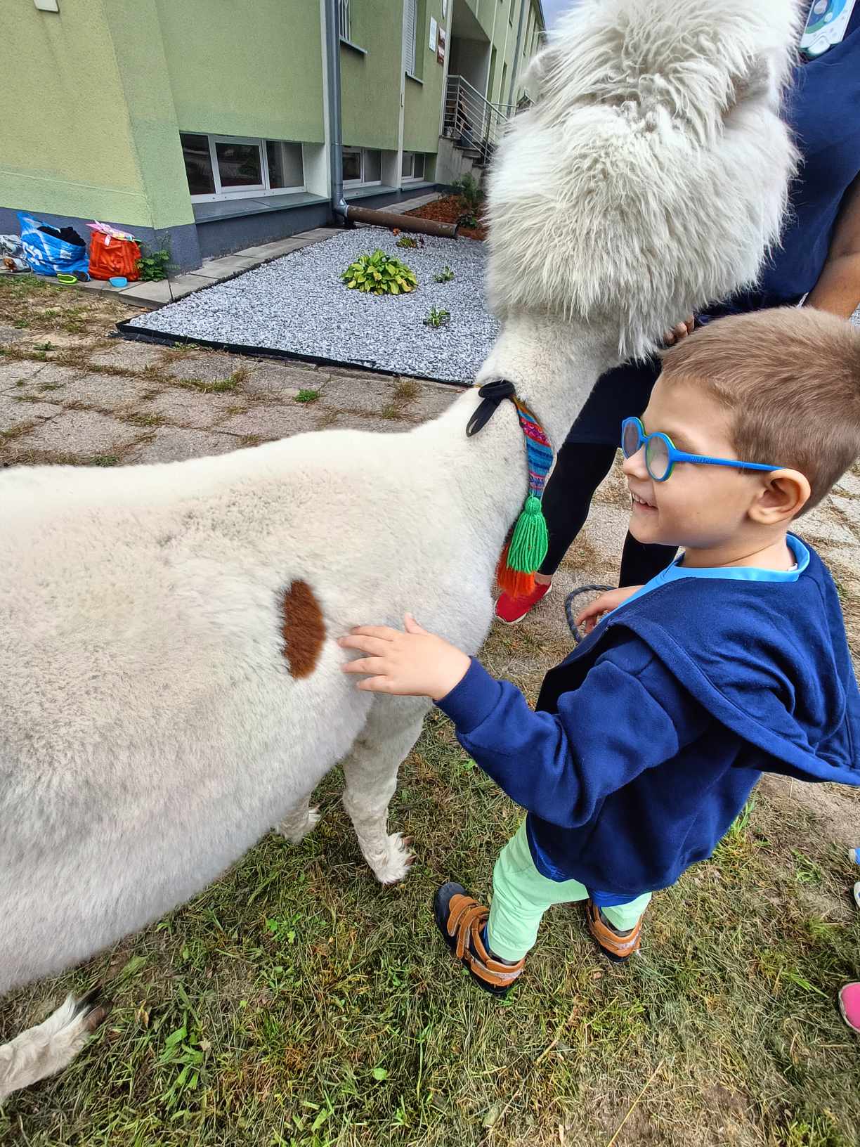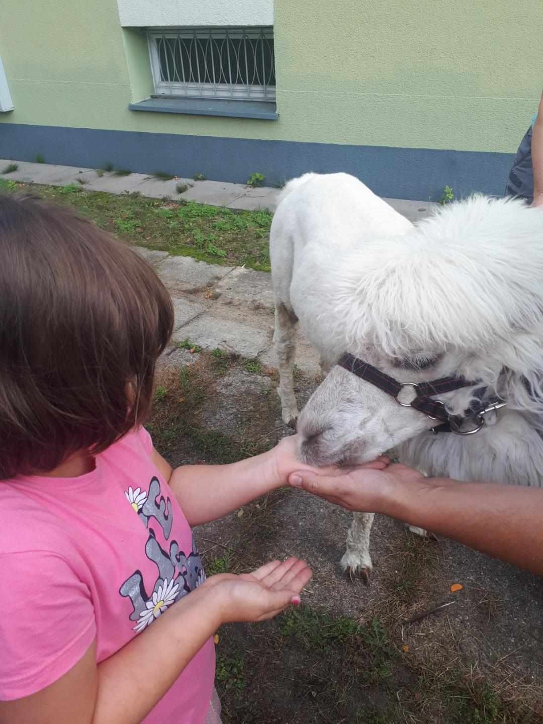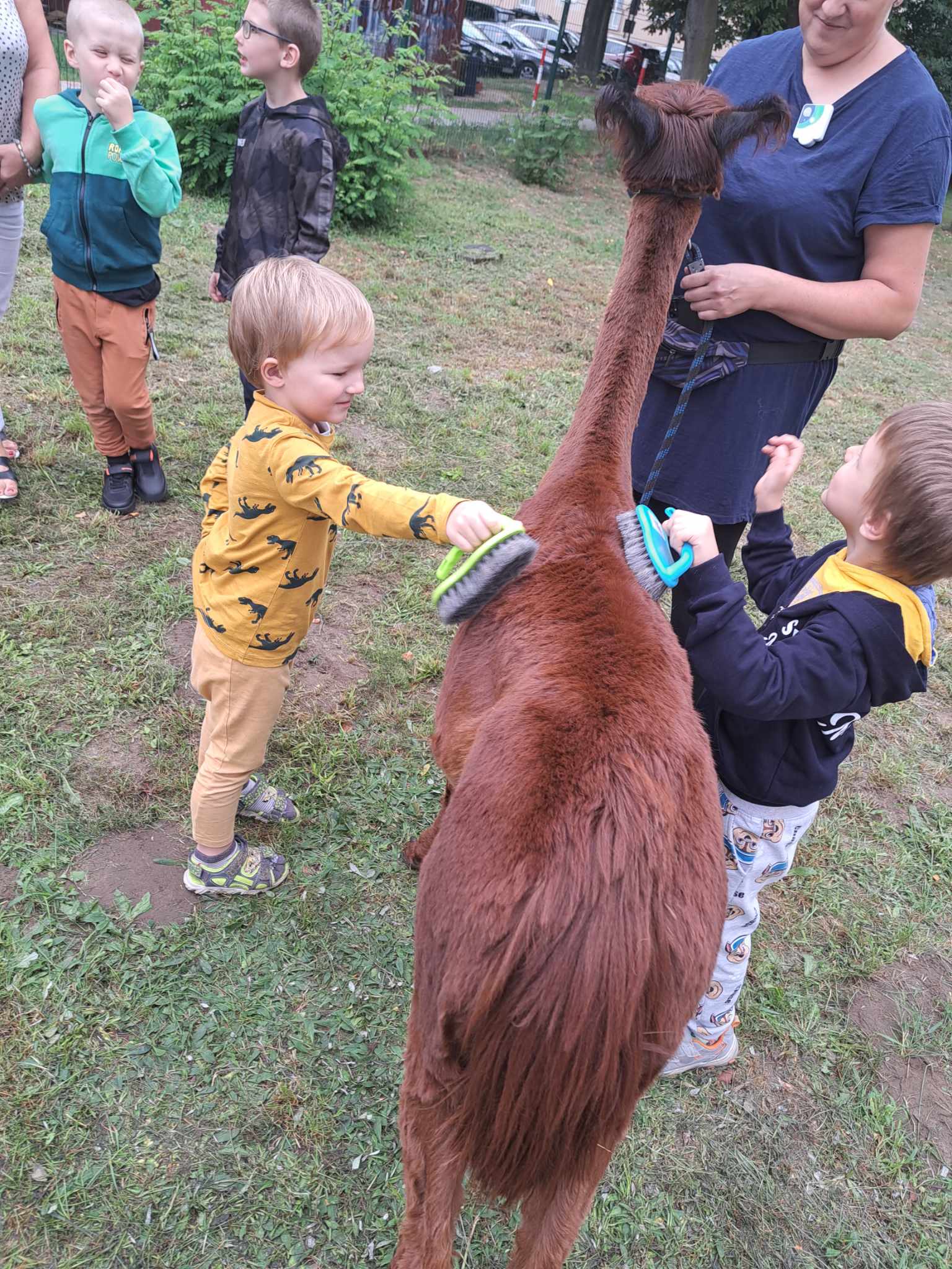 Podczas spotkania z Alpakami przedszkolaki dowiedziały się wielu ciekawostek na temat tych niesamowitych zwierząt. Co więcej, miały okazję dotknąć, pogłaskać, a nawet je nakarmić czy wyszczotkować. Przedszkolaki były zachwycone ich wizytą i serdecznie dziękują za taką możliwość właścicielom hodowli „Alpaki cudaki”.