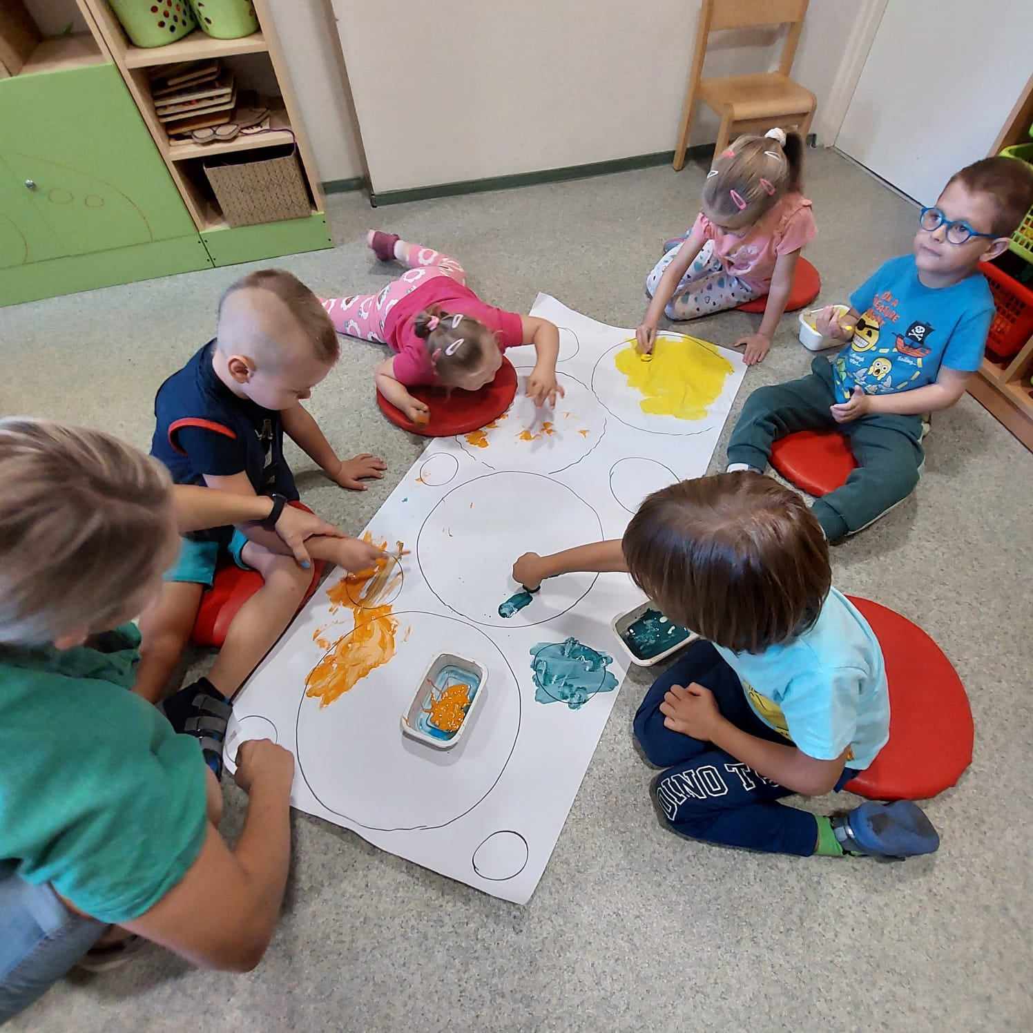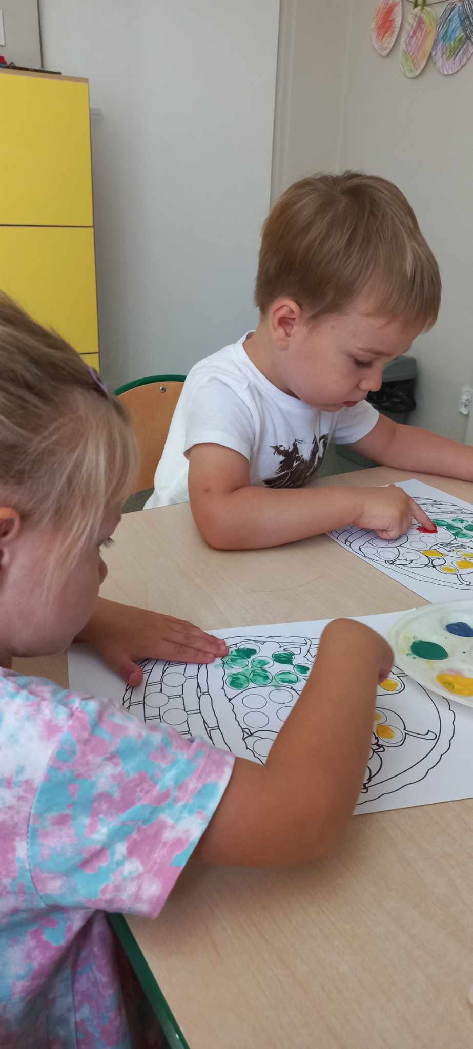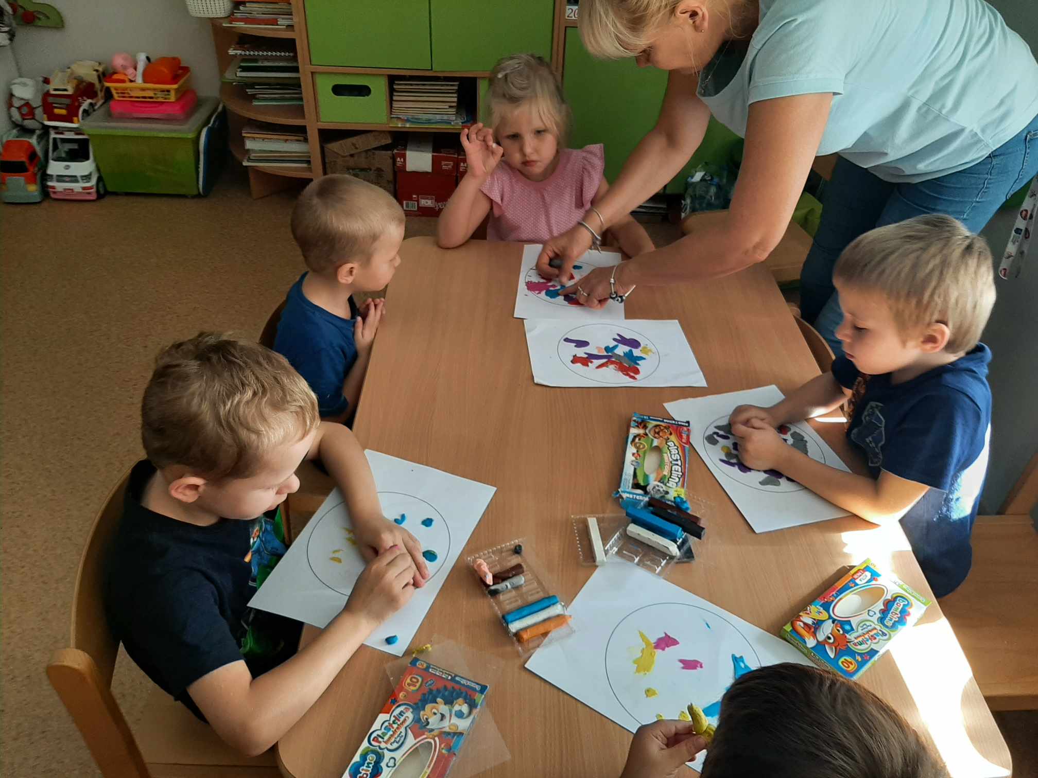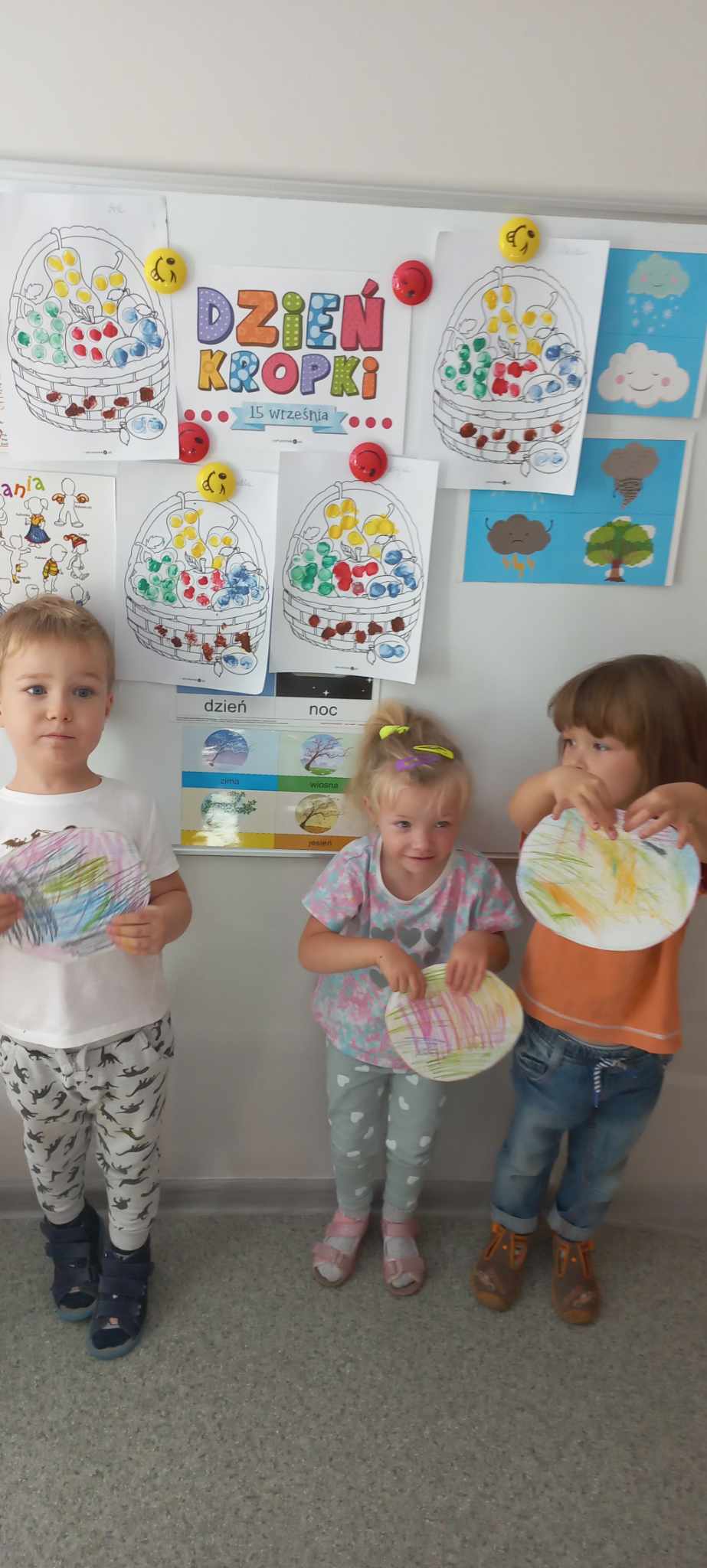 Przedszkolaki obchodziły również Dzień Kropki, którego celem jest wzbudzenie u dzieci kreatywności, pomysłowości i zachęcenie ich do działania i tworzenia. To dzień odwagi i dobrej zabawy. Tego dnia nasze zabawy wypełnione były kolorowymi kropkami.