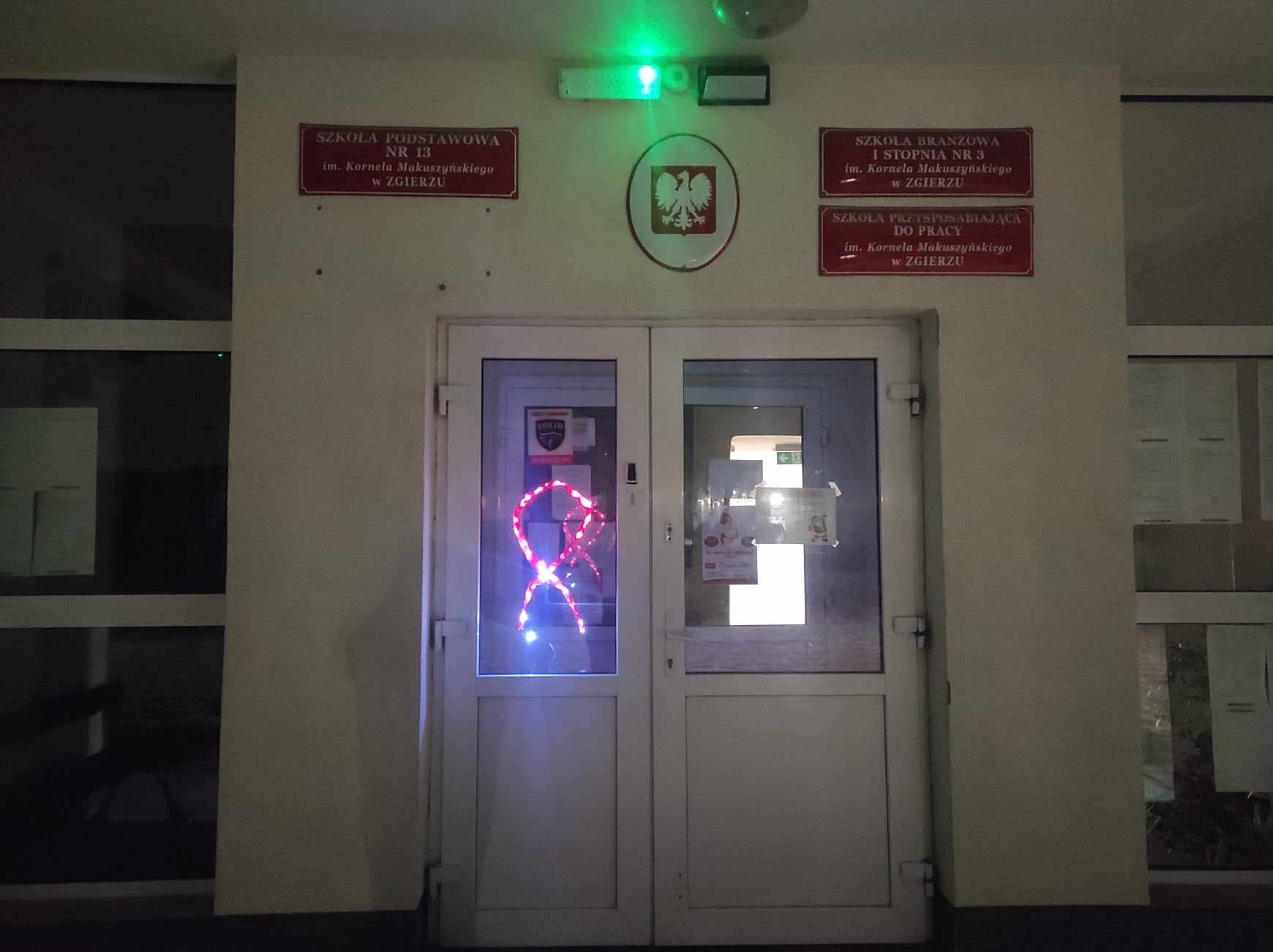 W tym roku uczniowie Specjalnego Ośrodka Szkolno - Wychowawczego im. Kornela Makuszyńskiego w Zgierzu przy współpracy z Powiatowa Stacja Sanitarno-Epidemiologiczna w Zgierzu stworzyli neon w kształcie czerwonej kokardy, który został wywieszony w oknie naszego Ośrodka.