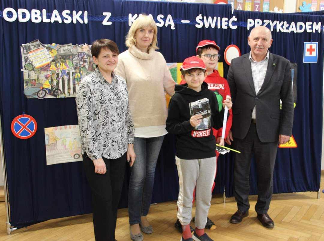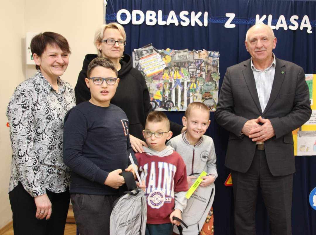 W piątek, tj. 12.01.2024 roku, odbyło się w naszej szkole rozdanie nagród z rąk Starosty Zgierskiego Bogdana Jaroty za udział w konkursie powiatowym "Odblaski z klasą - świeć przykładem".