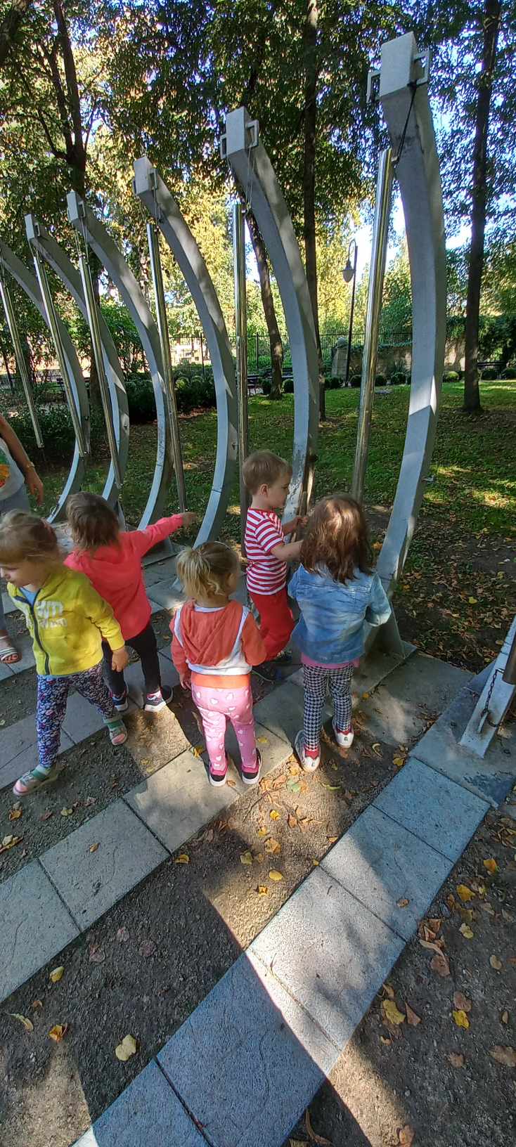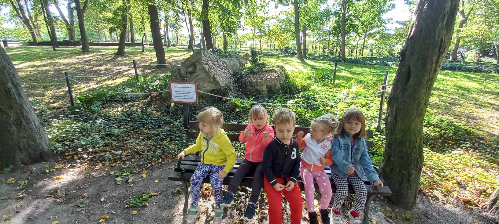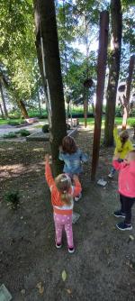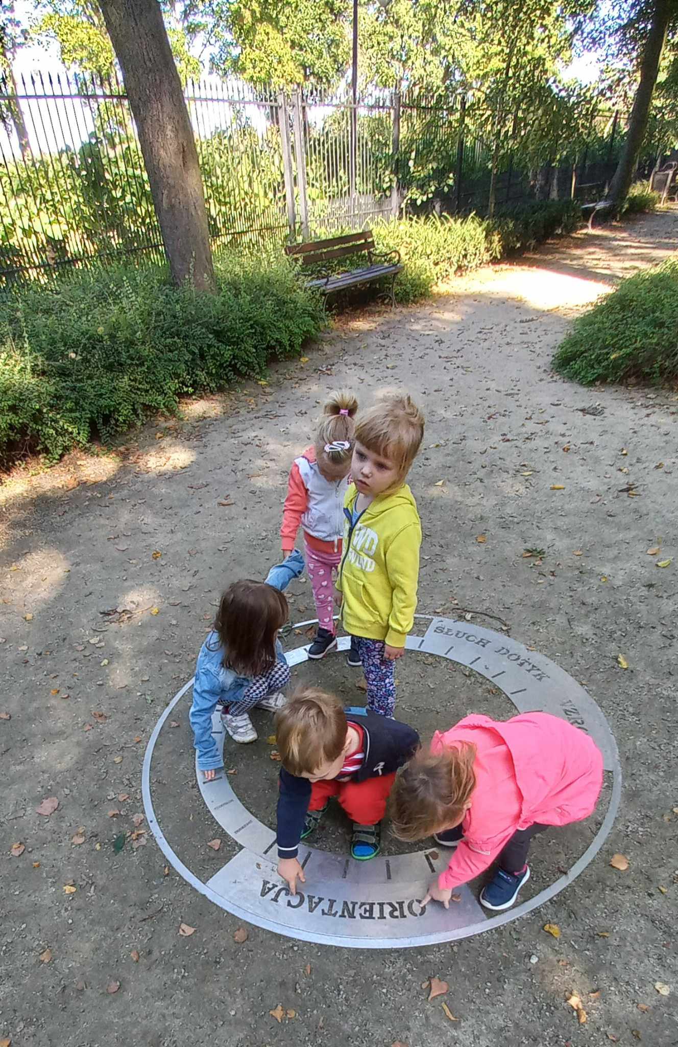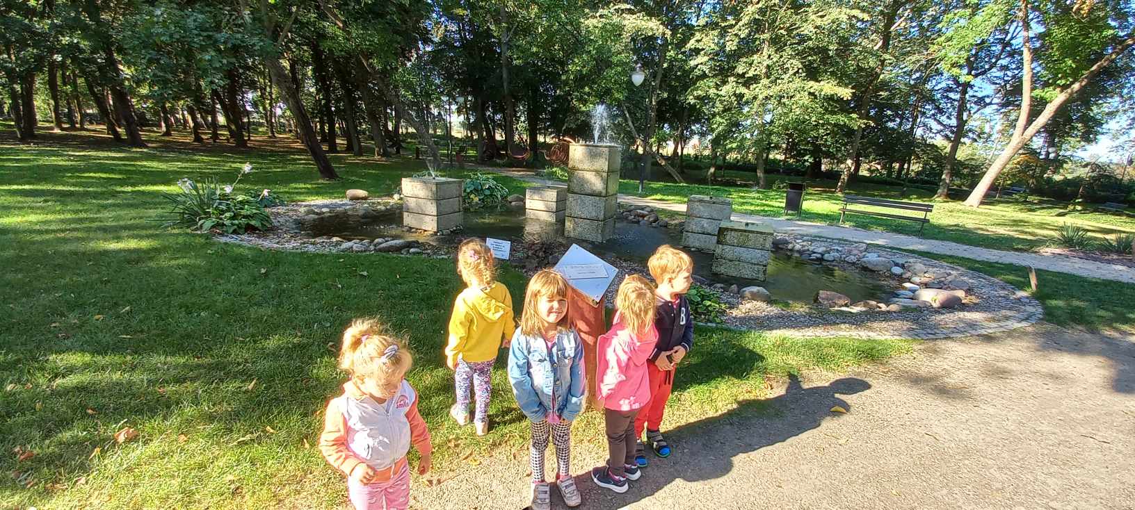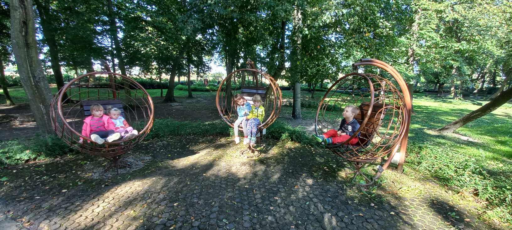 Dzieci z grupy Krasnoludki odwiedziły "Ogród Zmysłów"- zielony teren otaczający Pałac Grudzińskich w Poddębicach. Były to miłe chwile wśród zieleni, szumu wiatru i wody. Różne akcesoria, struktury i narzędzia wkomponowane w przestrzeń parku wyostrzały zmysły przedszkolaków, angażowały słuch, dotyk, wzrok, węch i orientację przestrzenną.