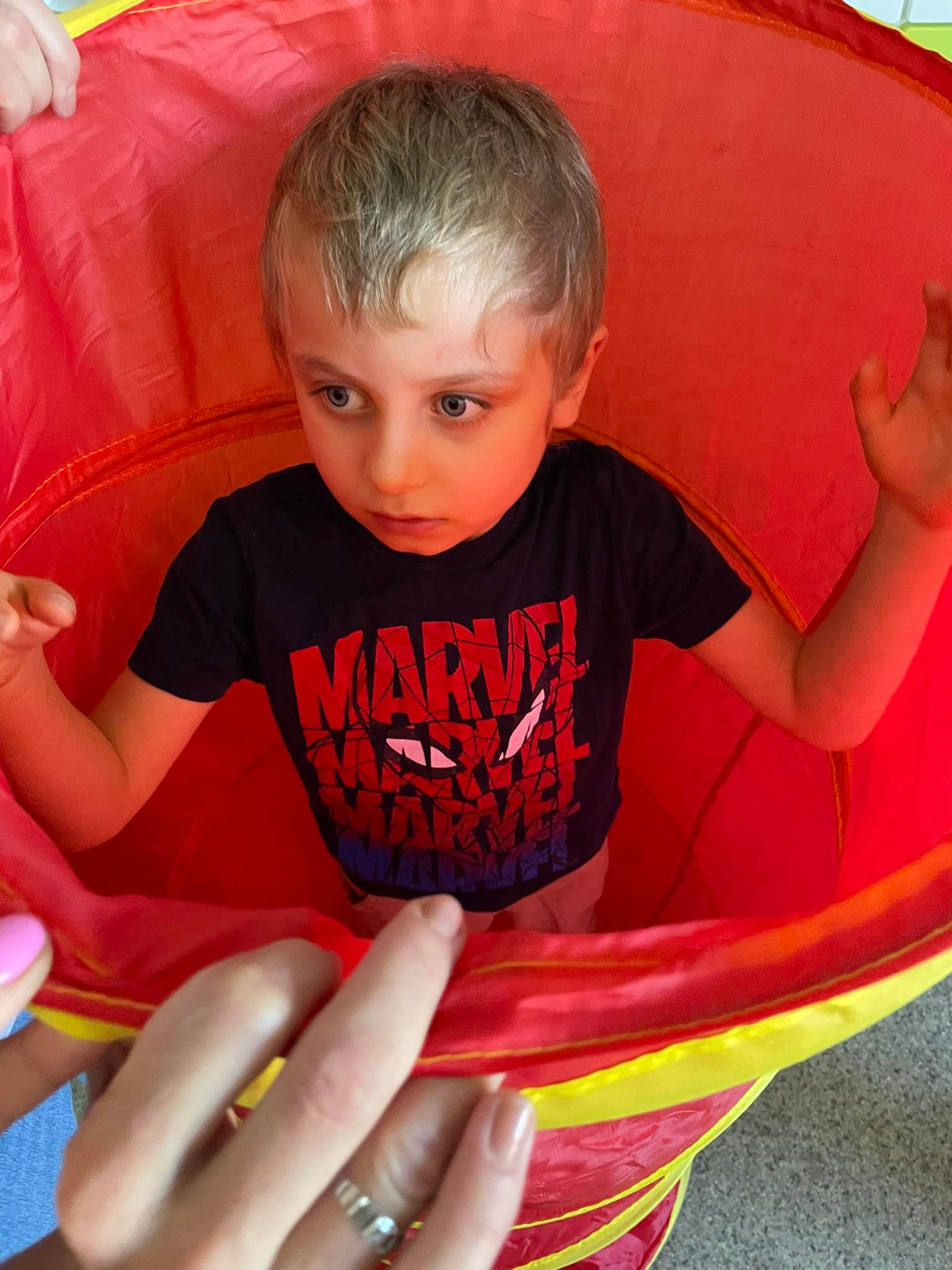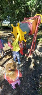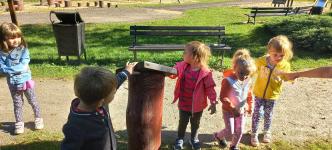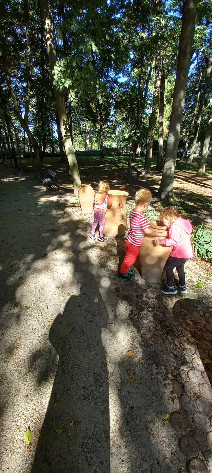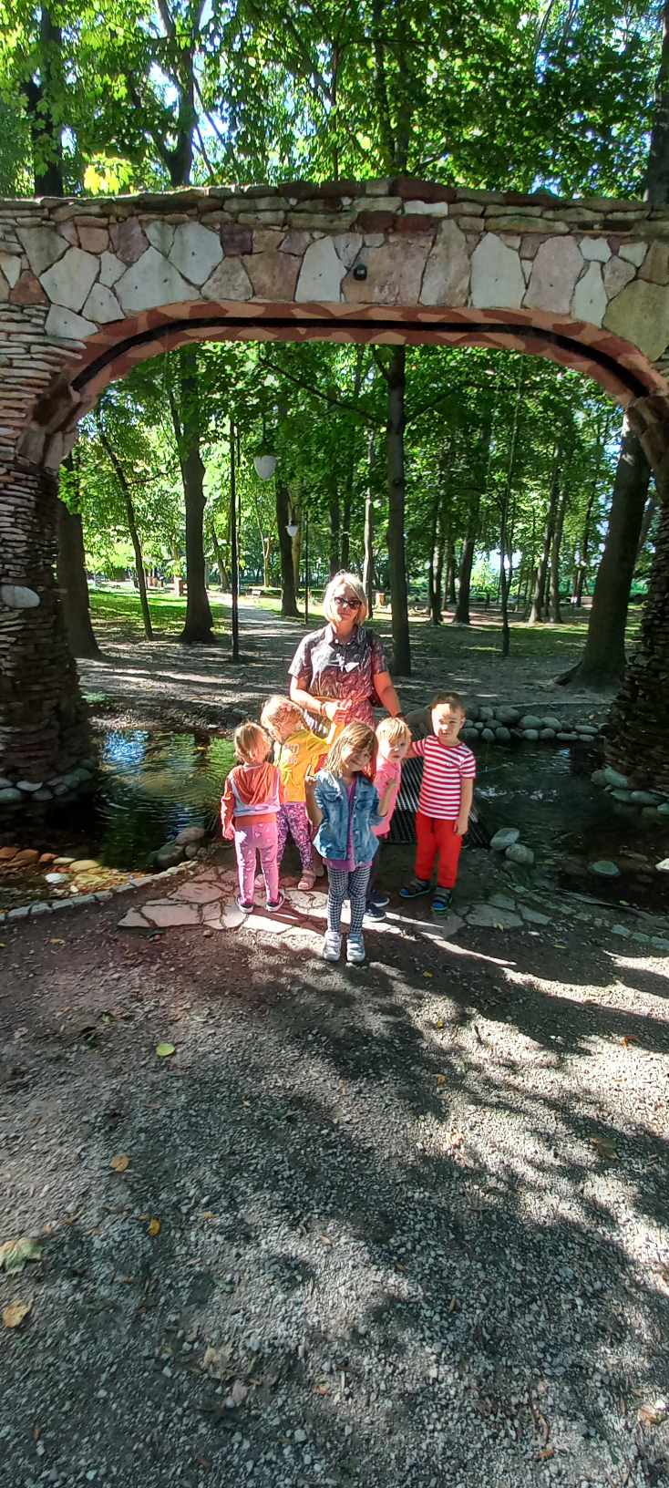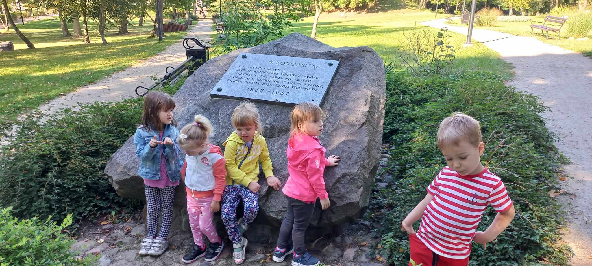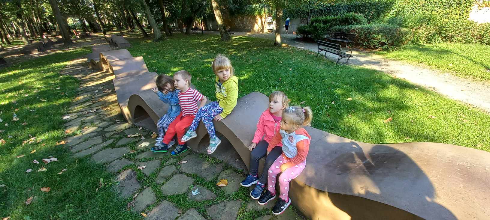 Dzieci z grupy Krasnoludki odwiedziły "Ogród Zmysłów"- zielony teren otaczający Pałac Grudzińskich w Poddębicach. Były to miłe chwile wśród zieleni, szumu wiatru i wody. Różne akcesoria, struktury i narzędzia wkomponowane w przestrzeń parku wyostrzały zmysły przedszkolaków, angażowały słuch, dotyk, wzrok, węch i orientację przestrzenną.