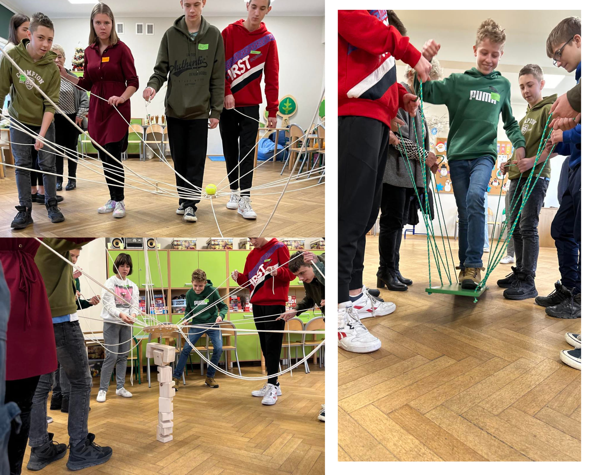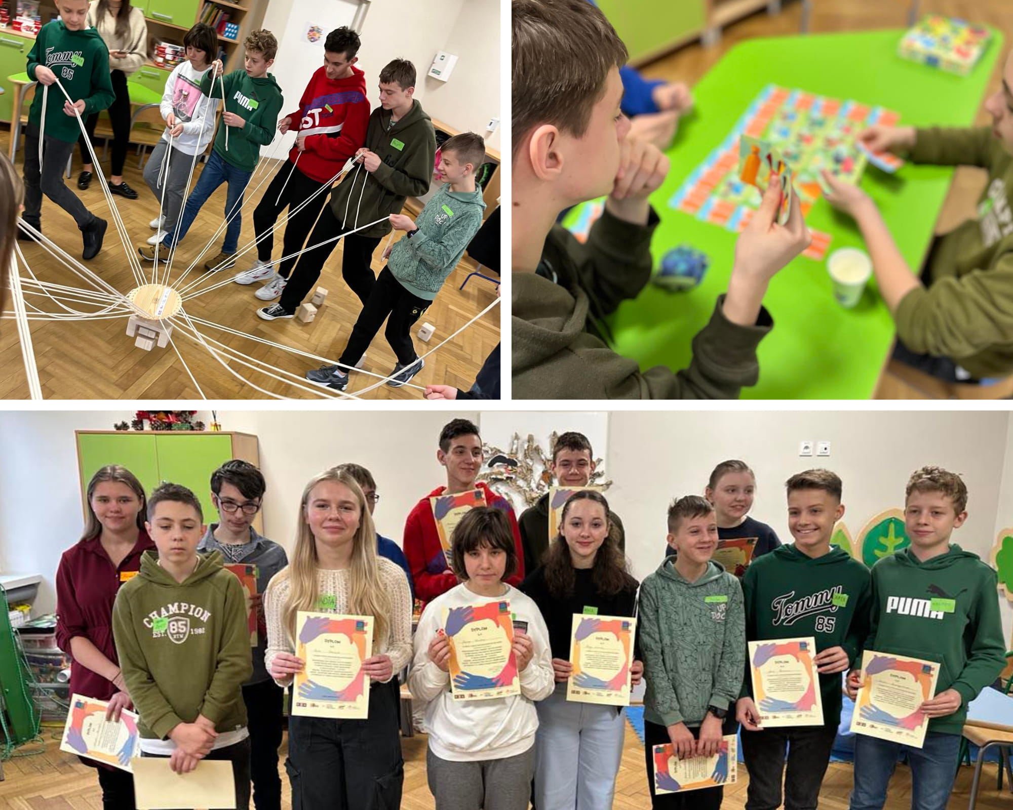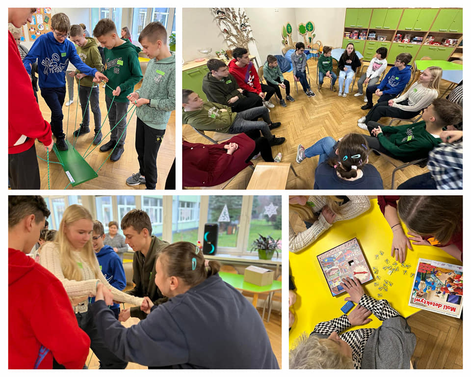 Kolejne warsztaty organizowane w naszym Ośrodku w ramach inicjatywy wolontariackiej "Współpraca się opłaca" odbyły się w już w atmosferze świątecznej. Uczniowie dwóch placówek ze Zgierza, tj. Szkoły Podstawowej nr 8 oraz Szkoły Podstawowej nr 13 (w SOSW im. K. Makuszyńskiego) stanęli przed zadaniami, których rozwiązanie było możliwe tylko dzięki wspólnej pracy wszystkich uczestników. Udało się znaleźć ukryte skarby, zbudować wieżę przy użyciu prostego mechanizmu, przenieść piłeczkę na niewielkim pierścieniu i ją nałożyć na drążek oraz kilka innych zadań. Refleksja, jaką uczniowie wysnuli podczas podsumowania zajęć brzmiała: można rozwiązać każdy problem, jeśli ludzie ze sobą rozmawiają i sobie pomagają. Oby ta idea towarzyszyła nam wszystkim zawsze... Dziękujemy Stowarzyszeniu EZG za możliwość przeprowadzenia warsztatów. Materiały wykorzystane do zajęć oraz poczęstunek dla dzieci został dofinansowany przez Narodowy Instytut Wolności - Centrum Rozwoju Społeczeństwa Obywatelskiego ze środków zadania pn. "Kuźnia Wolontariatu w Powiecie Zgierskim" w ramach konkursu "Wolontariackie i Młodzieżowe Inicjatywy Lokalne".
