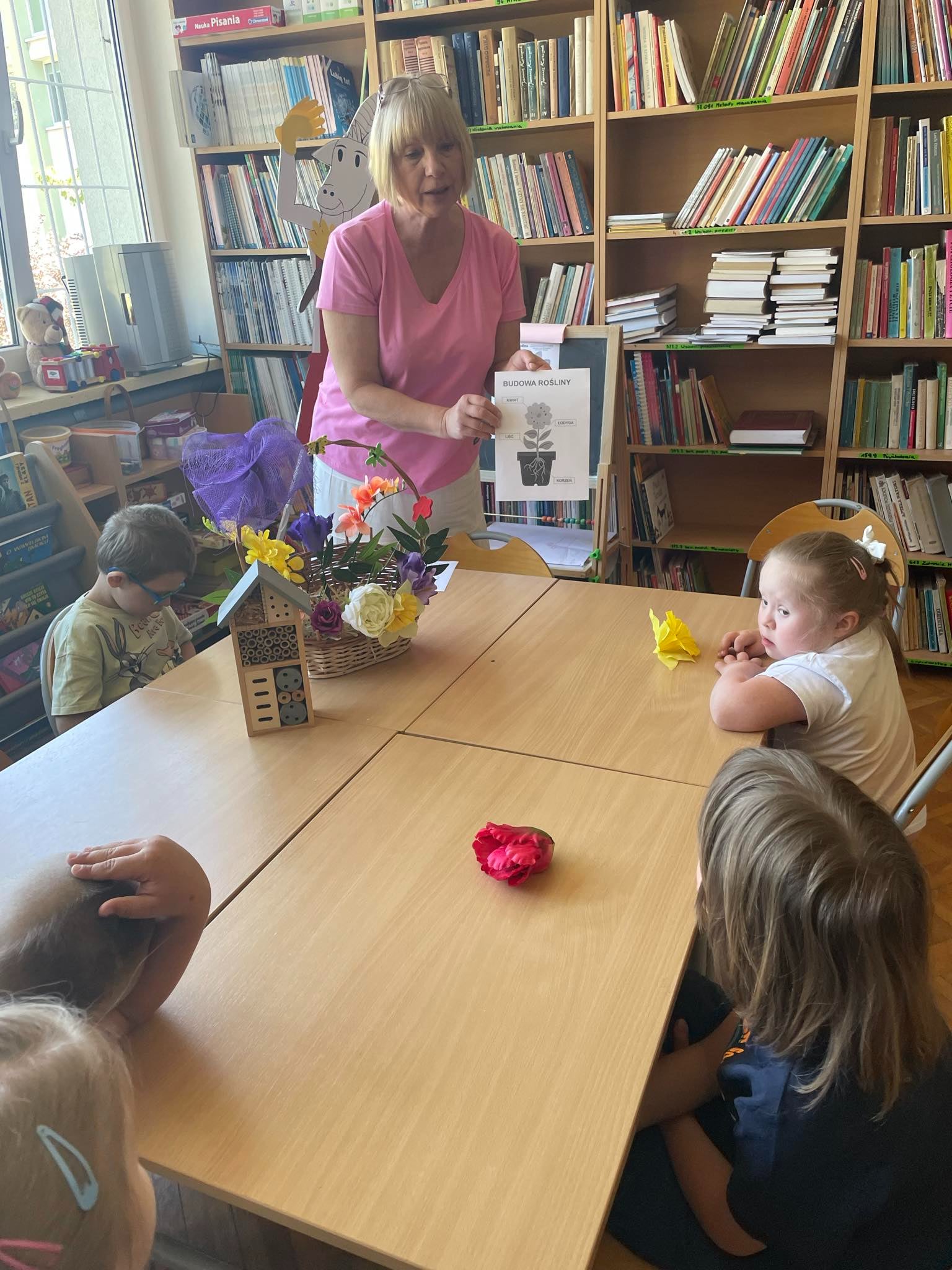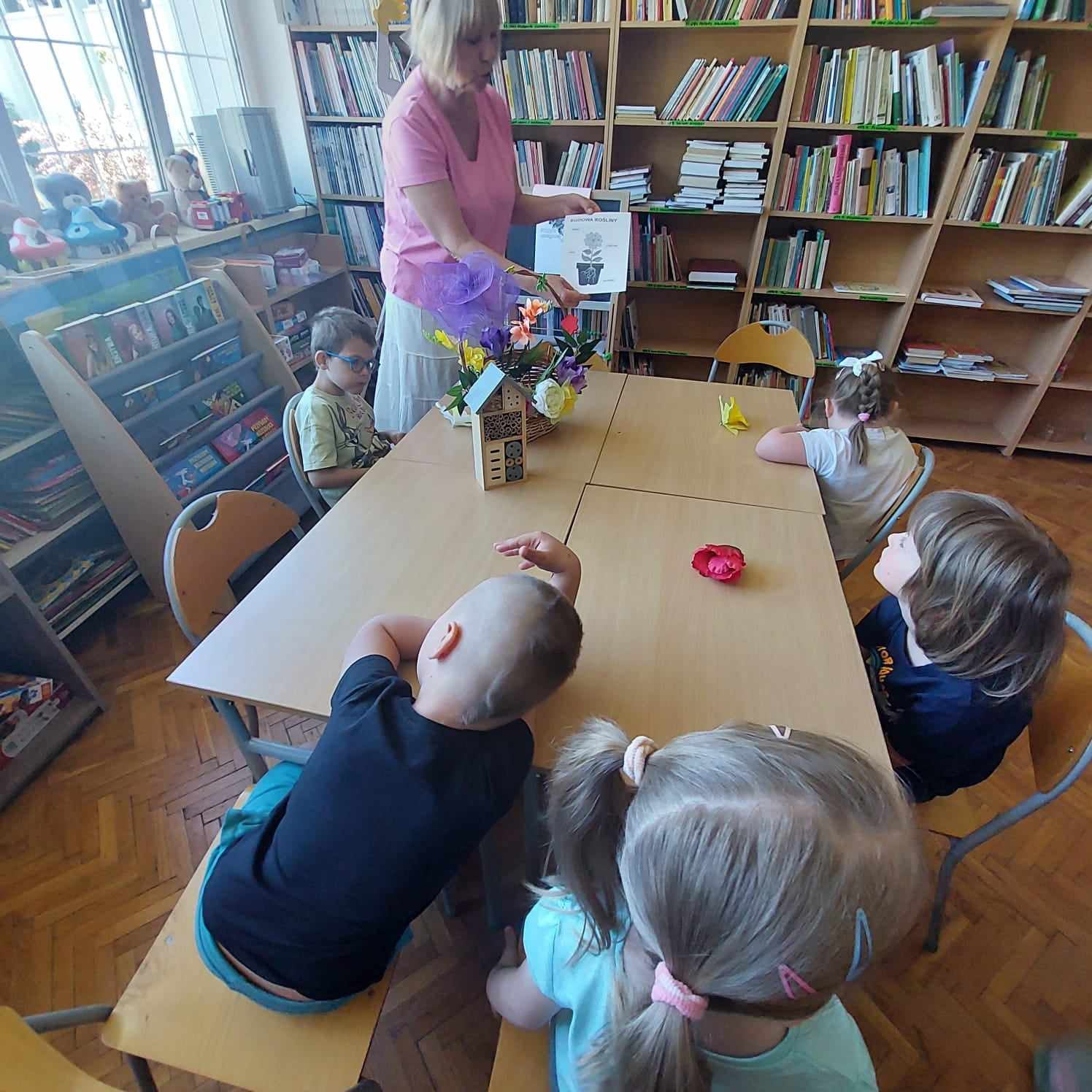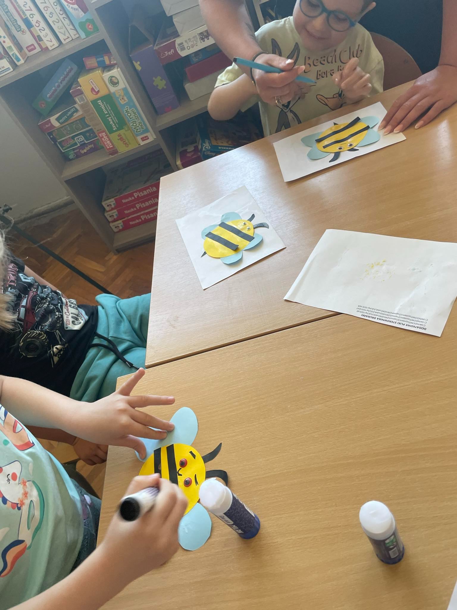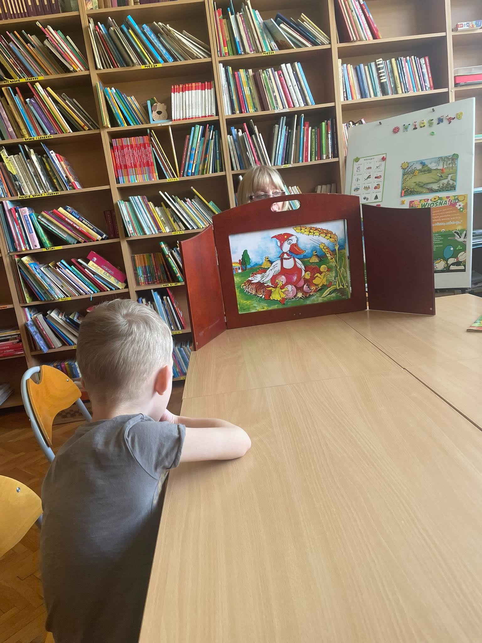 Biedronki, Misie i Puchatki wzięły udział w zajęciach edukacyjnych w bibliotece szkolnej. Przedszkolaki z zainteresowaniem wysłuchały ciekawostek o życiu pszczół i jeży, wykonały prace plastyczne, obejrzały teatrzyk oraz chętnie zapoznały się z księgozbiorem.