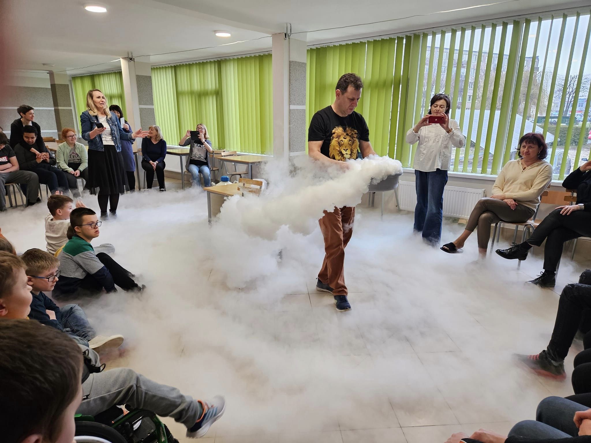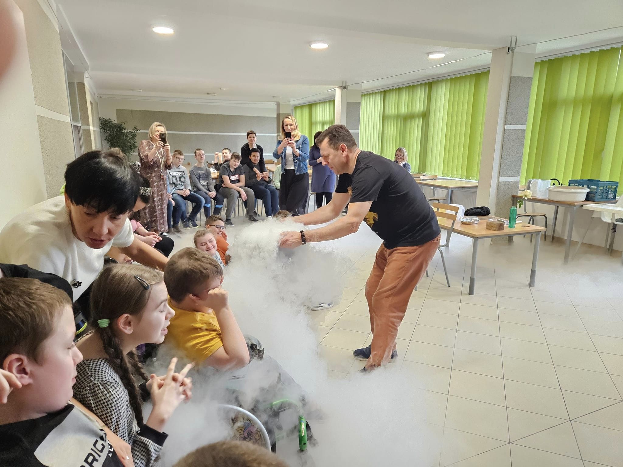 Zajęcia Science Park - naukowy pokaz z parującego azotu, czyli najzimniejszej substancji na świecie.