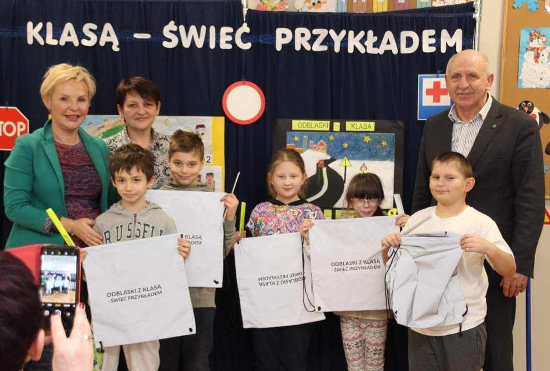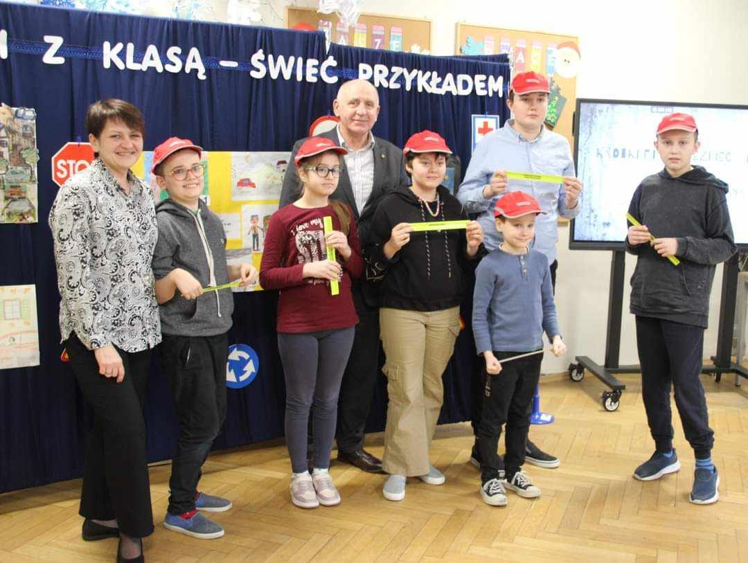 W piątek, tj. 12.01.2024 roku, odbyło się w naszej szkole rozdanie nagród z rąk Starosty Zgierskiego Bogdana Jaroty za udział w konkursie powiatowym "Odblaski z klasą - świeć przykładem".